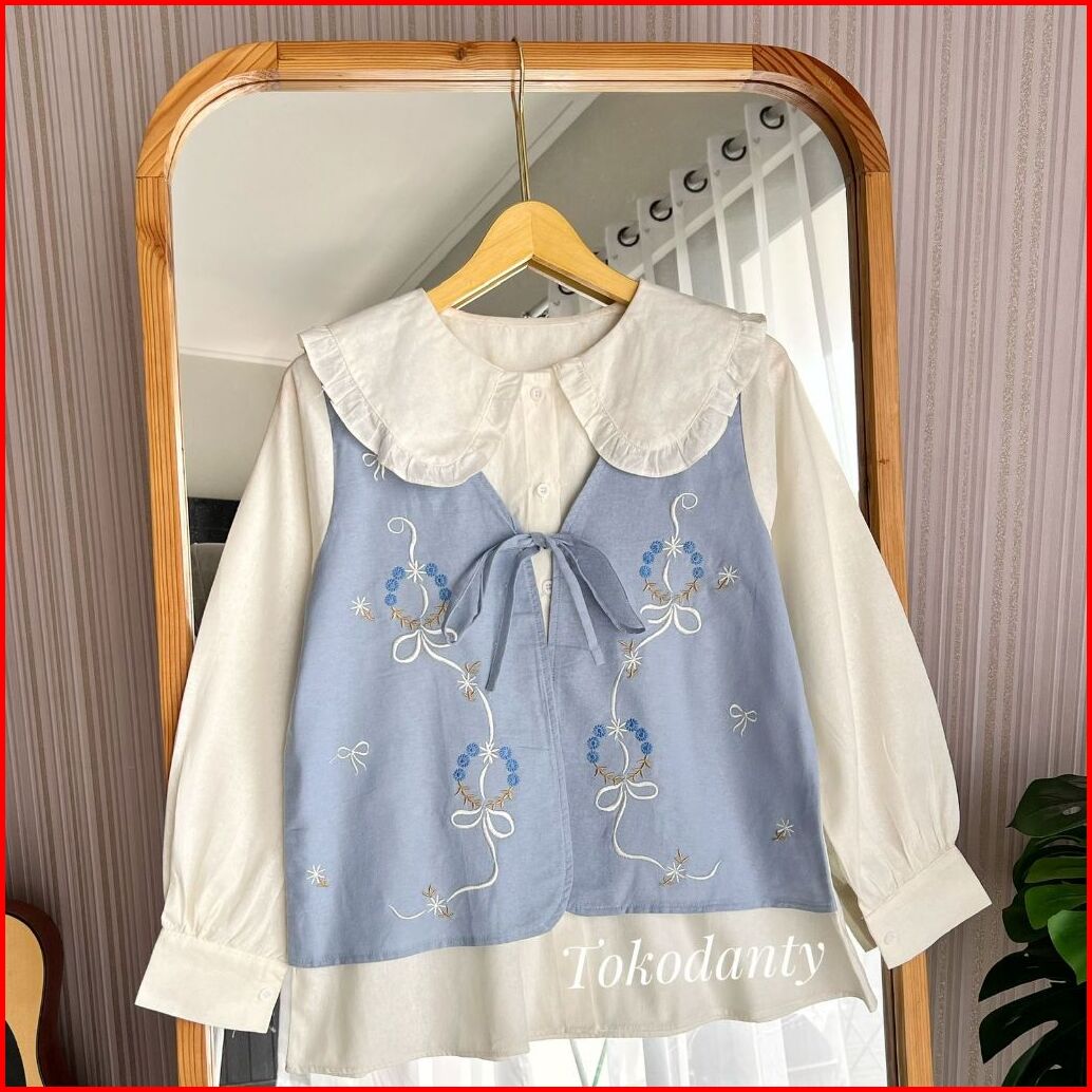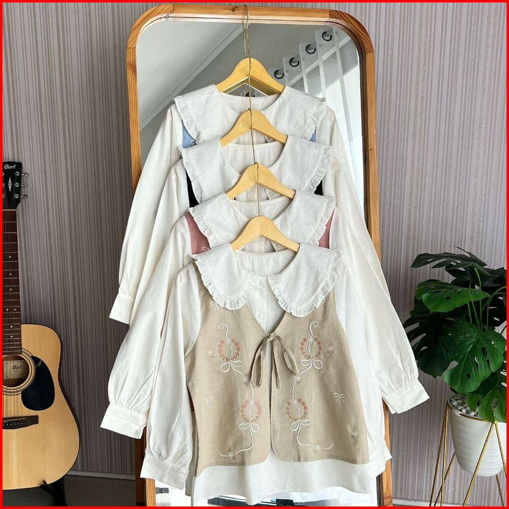 Kamari Shirt Atasan Kemeja Wanita Lengan Panjang Katun Linen Bordir