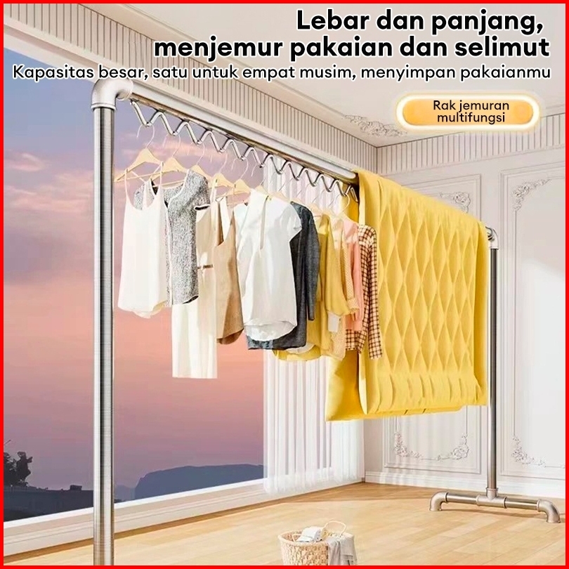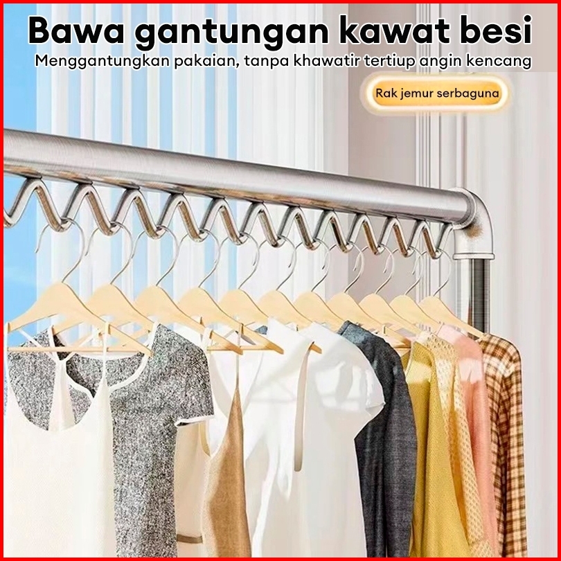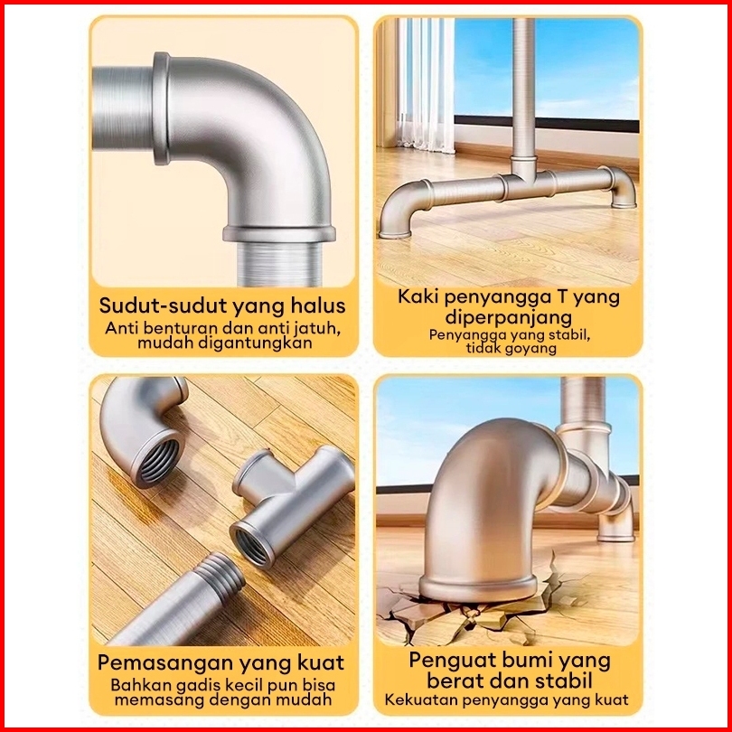 Kaitomax 200cm Jemuran Baju Tabung Baja Single Jemuran Baju Stainless Steel Jemuran Pakaian Minimalis