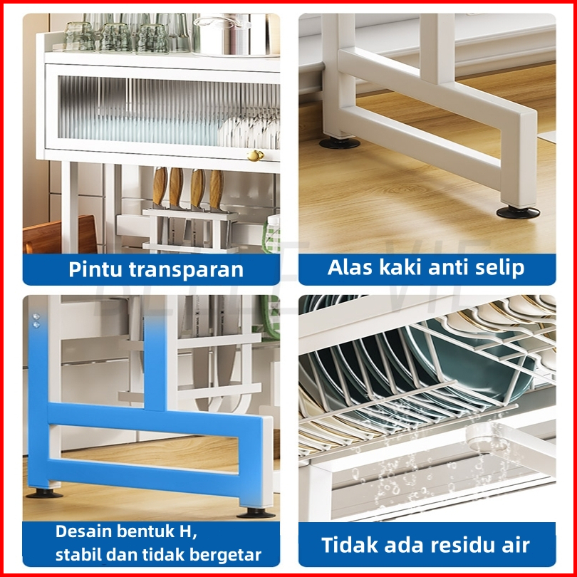 Omax Rak Piring Wastafel Dapur Stainless Steel Multi-fungsi Dengan Penutup Rak Piring Gantung Penyimpanan Dapur Rak Mang