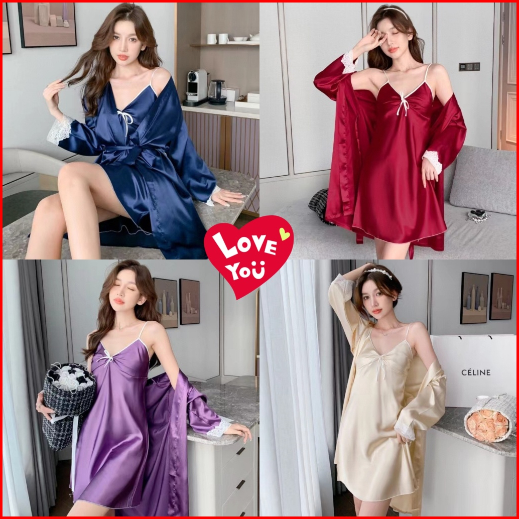 2 In 1 Kimono Dress Satin 2 In 1 Import Premium Tanktop Dan Kimono