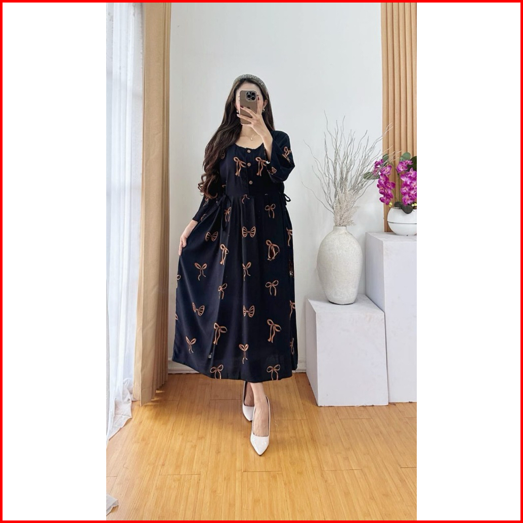 Dress Chibi Jumbo Daster Lengan 3 4 Busui Kancing Bahan Rayon Adem Daster Busui Jumbo Daster Ibu Hamil