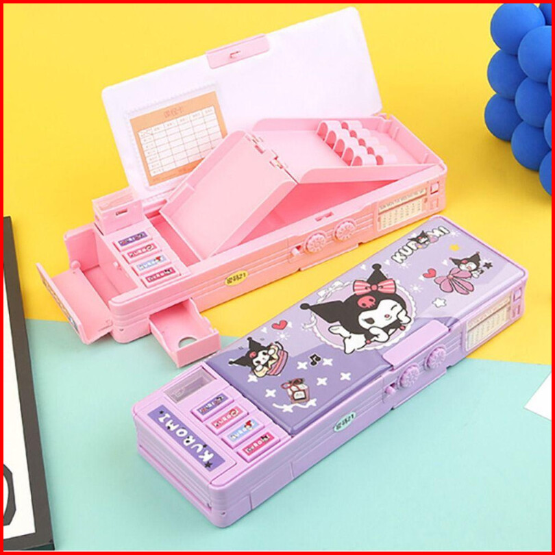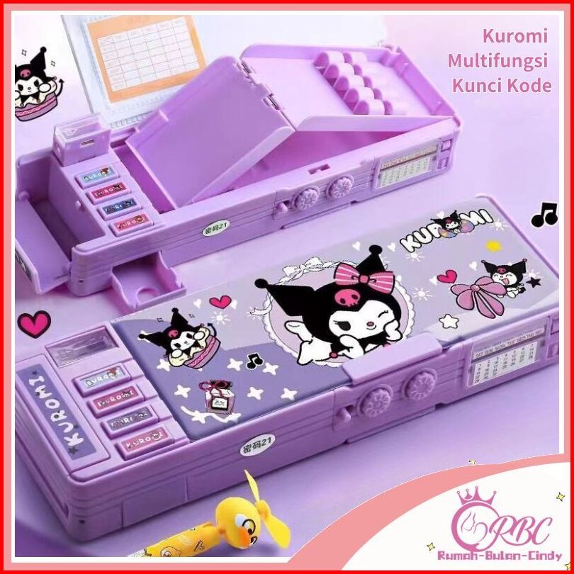 Penjual Lokal Kotak Pensil Password Kartun Kuromi Termasuk Rautan Pensil Kotak Alat Tulis Lapis Ganda Berkapasitas Besar