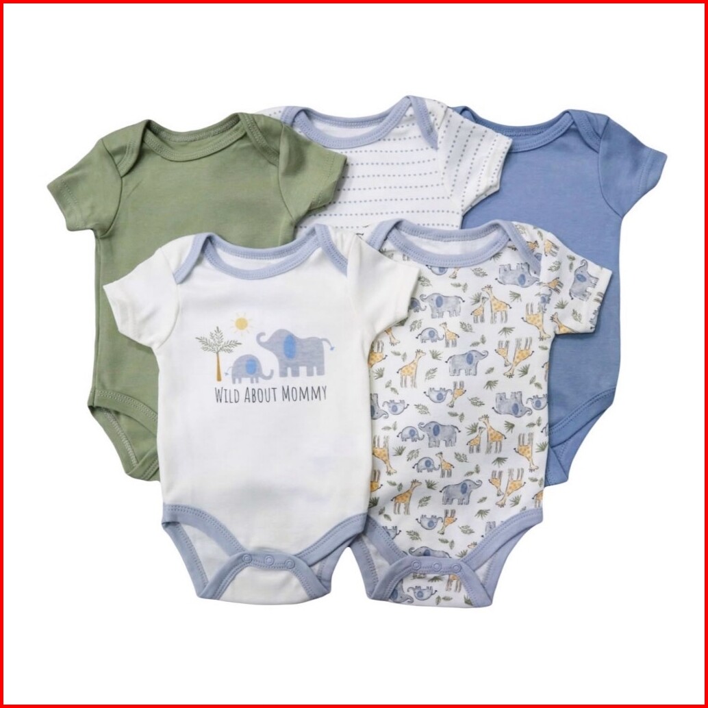 Littleolala - Baby Bodysuit 5pcs Motif Wild Elephant