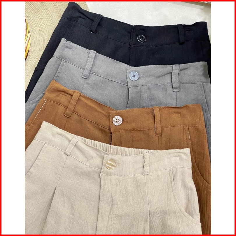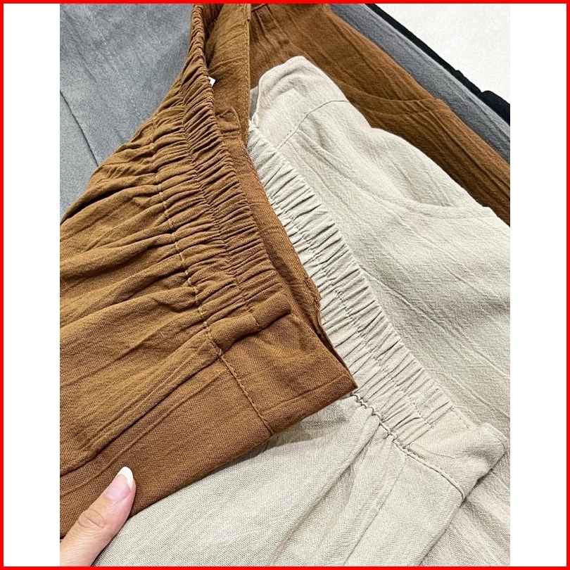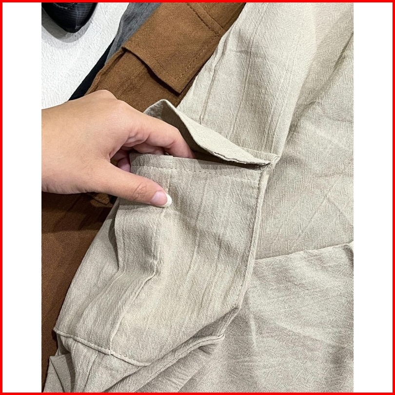 Celana Kargo Wanita Linen Crinkle Highwaist - Cargo Pants - Baggy Cullote Pants