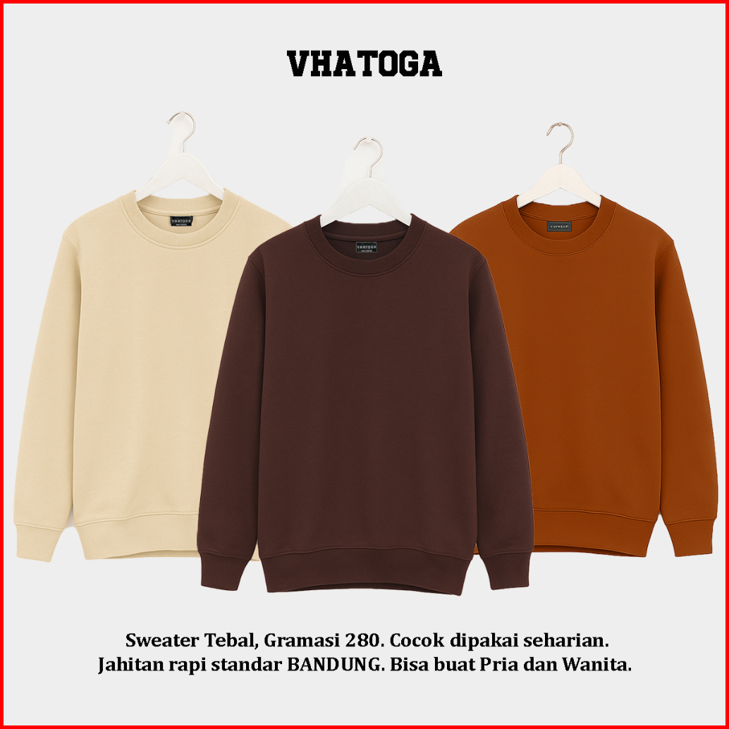 Vhatoga - Crewneck Sweater Polos Pria Wanita Reguler Fit Mocca