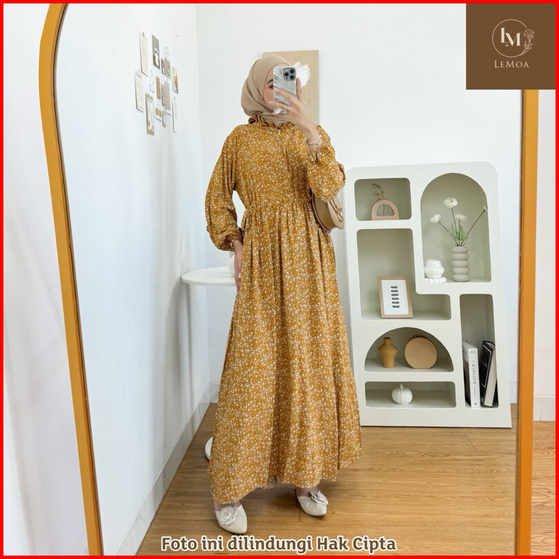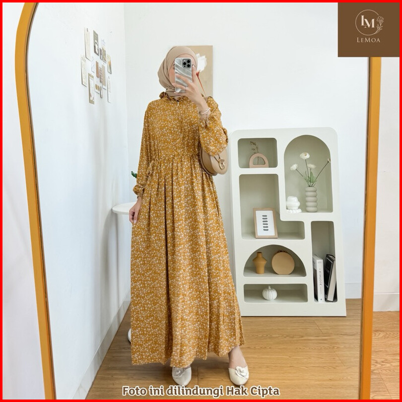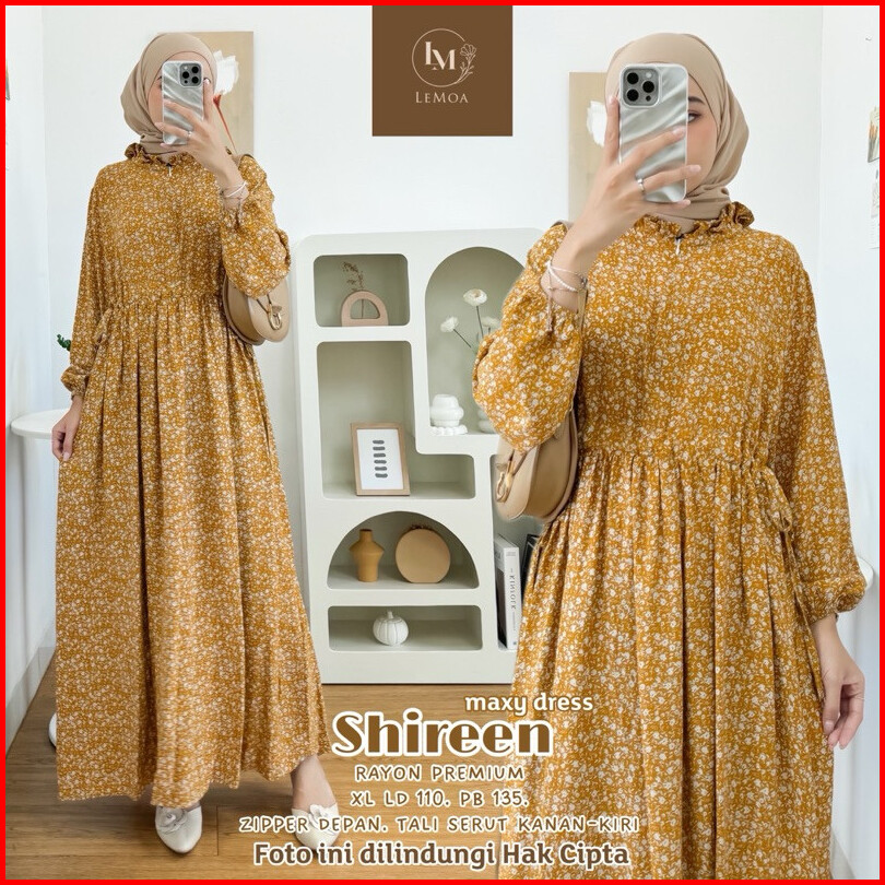 Shireen Gamis Maxy By Lemoa Long Dress Ld 110 Pb 135 Model Tali Serut Motif Bunga Bahan Rayon Premium Baju Panjang Wanit
