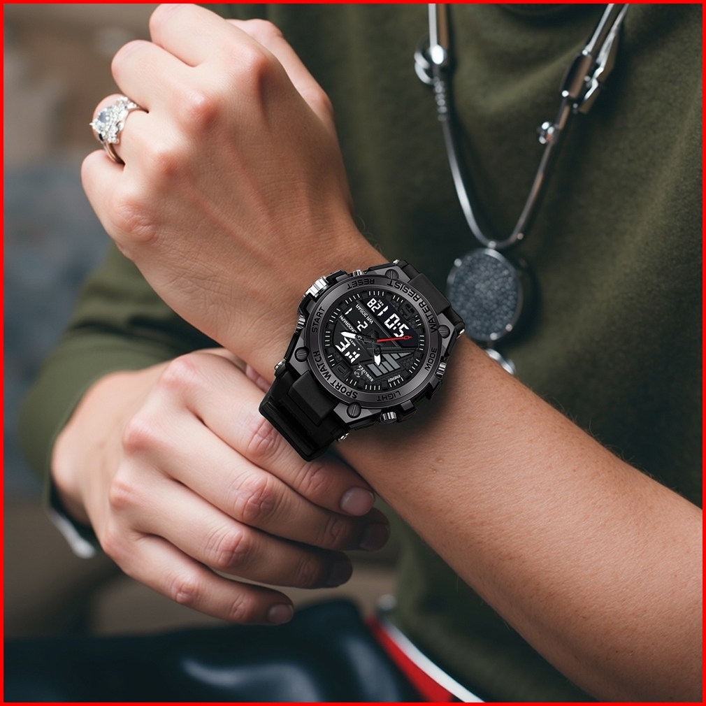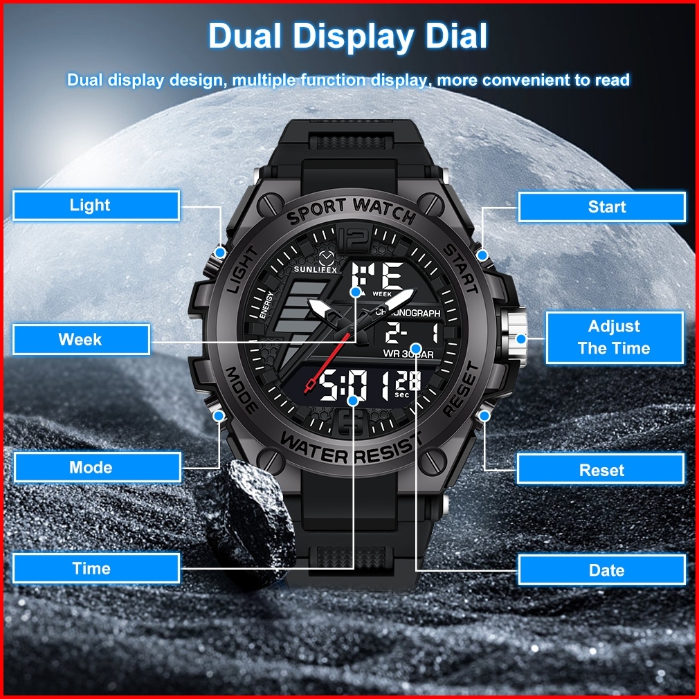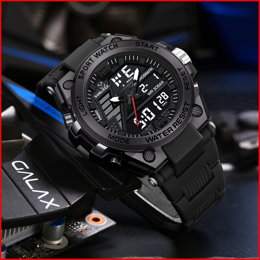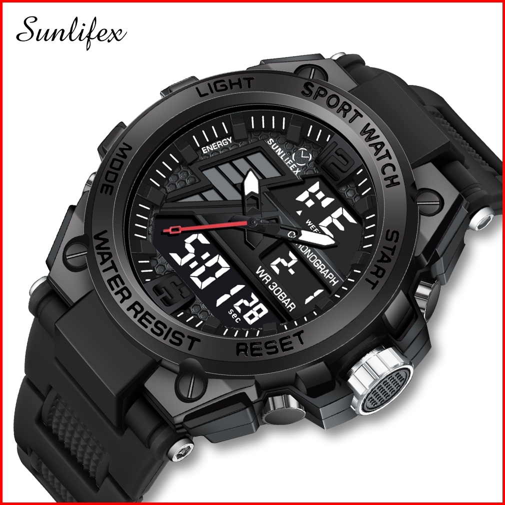 Sunlifex Jam Tangan Pria D004 Digital Analog Multifungsi Olahraga Tali Silikon Jam Tangan Cowok