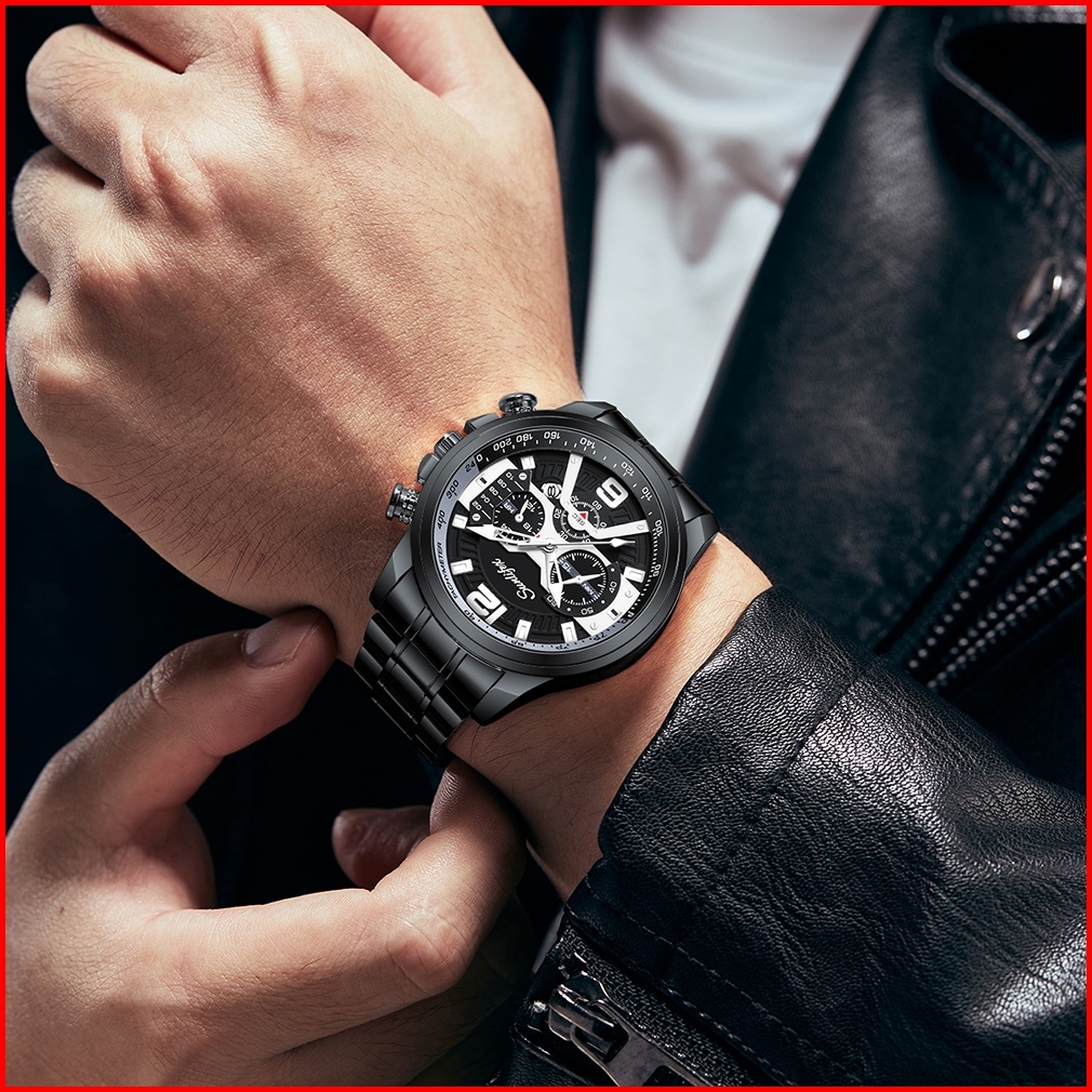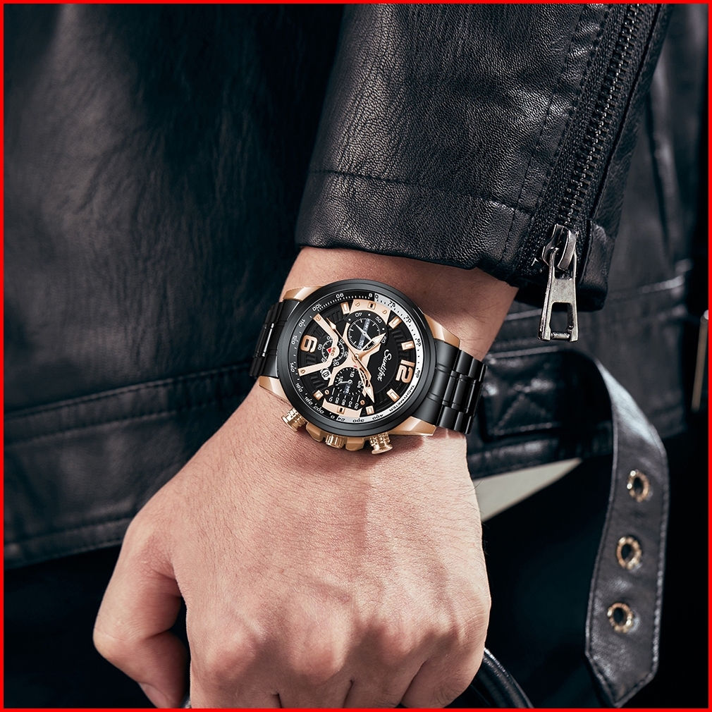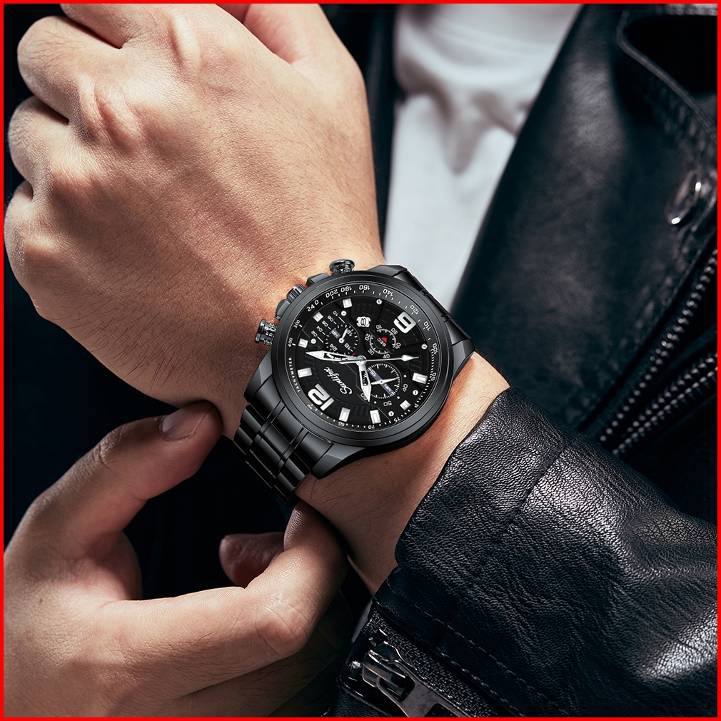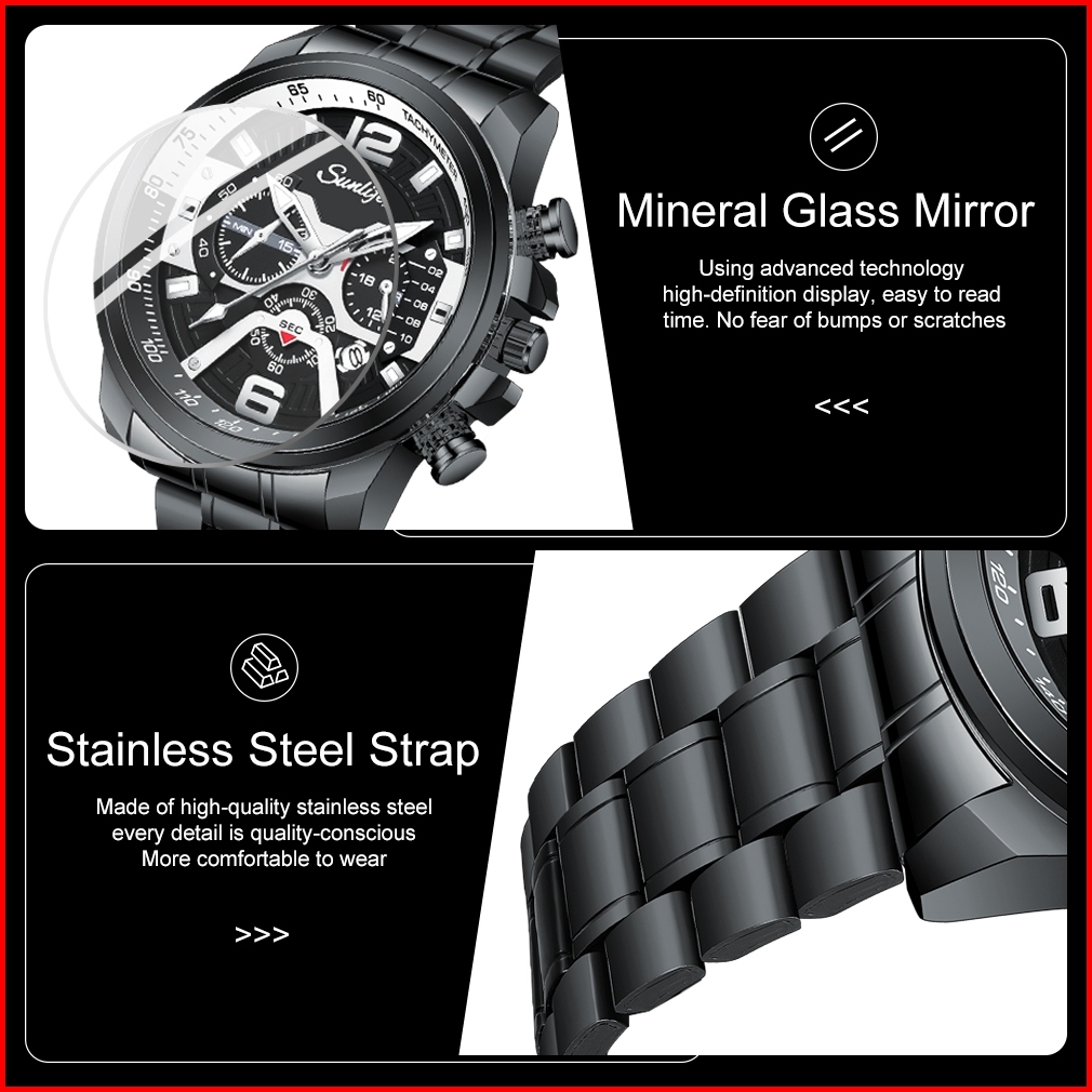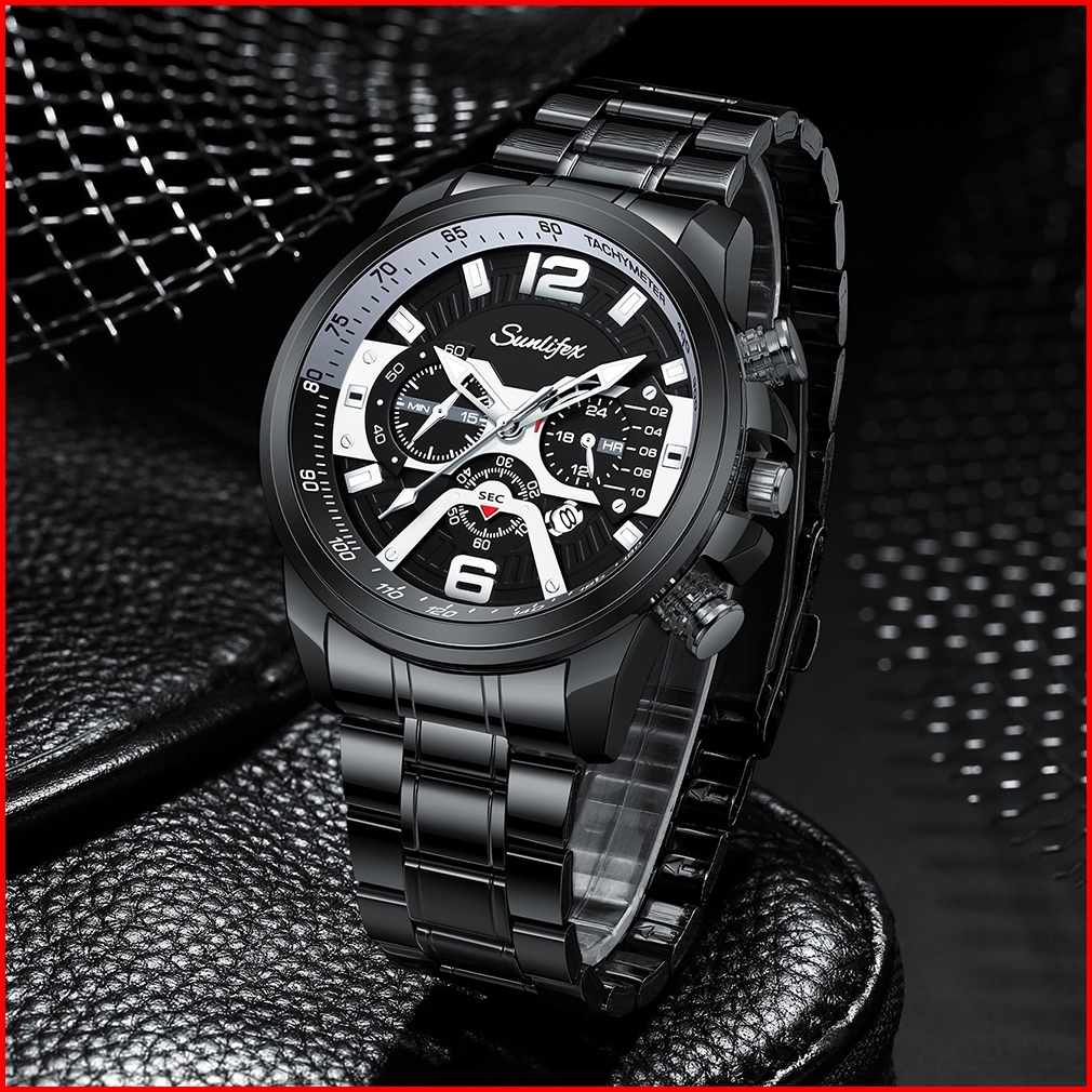 Sunlifex Jam Tangan Pria 9033 Kalender Kasual Kemewahan Tali Stainless Steel Kuarsa Jam Tangan Cowok
