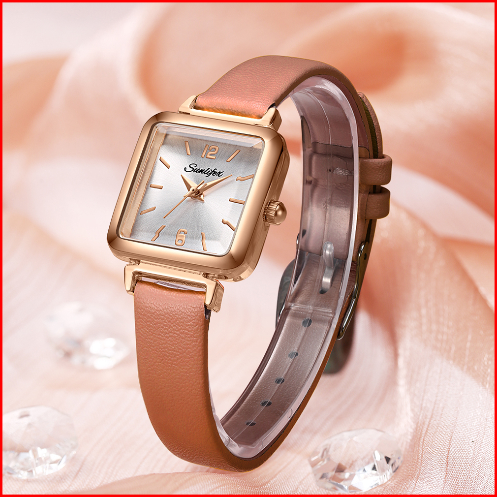 Sunlifex Jam Tangan Wanita 8004 Original Korea Kecil Anggun Tali Kulit Jam Tangan Cewek