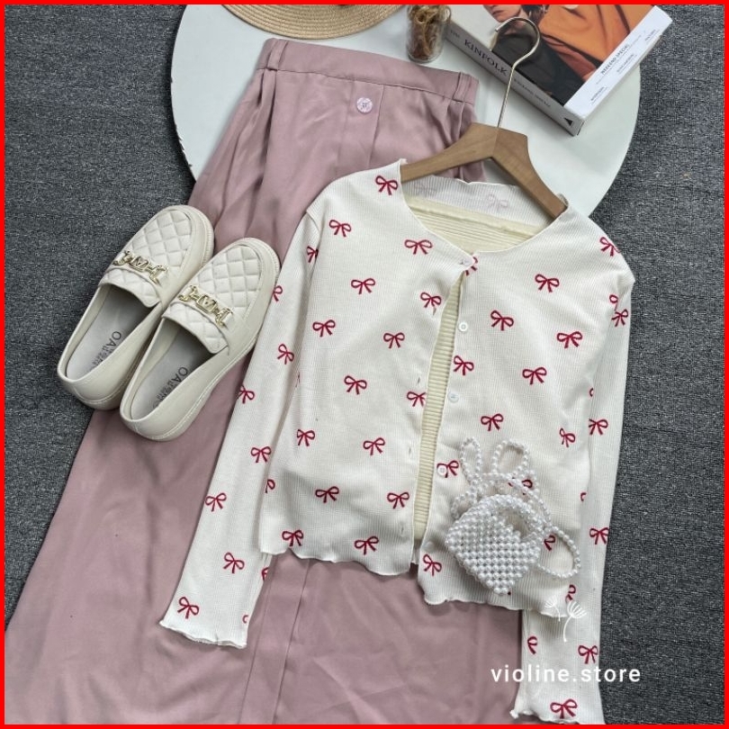 Violine Store - Oneset Setelan Wanita Remaja Rok Panjang Atasan Cardi Pita Rok Syakilla Korean Style Terbaru 2025 Ootd S
