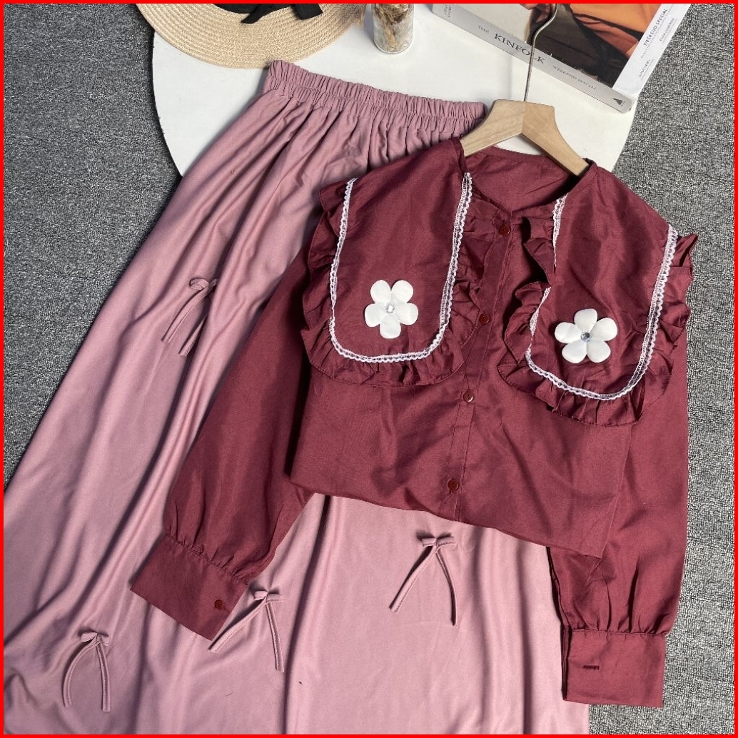 Violine.store - One Set Remaja Kekinian Korean Style Wanita Remaja Outfit Terbaru Atasan Cute Bawahan Rok Co Cute Premiu
