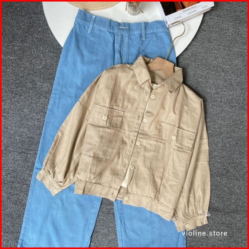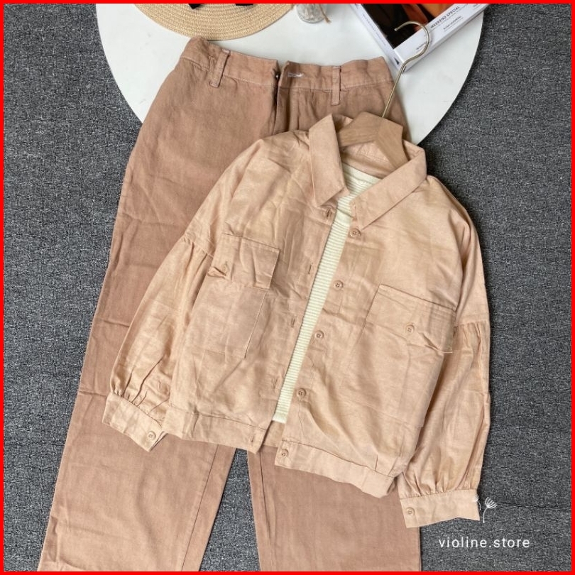Violine Store - Oneset Terbaru Wanita Remaja Kekinian Kemeja Linen Kulot Jeans Super Premium Simple Anti Ribet Outfit Ke
