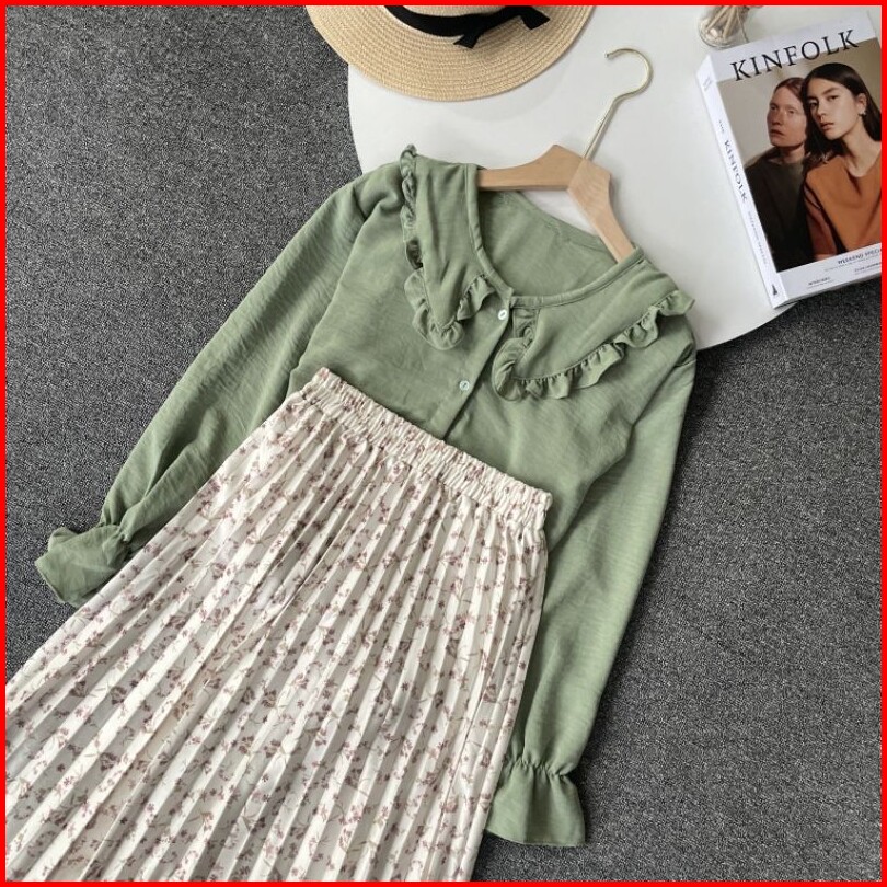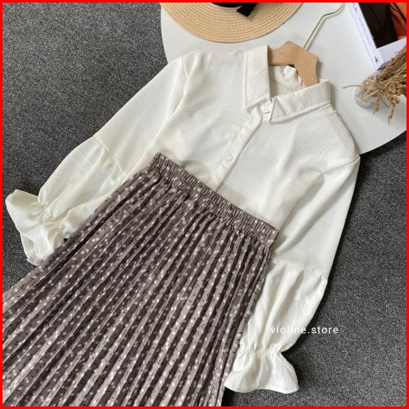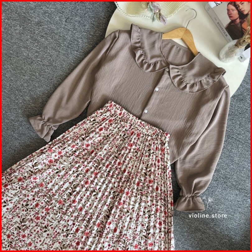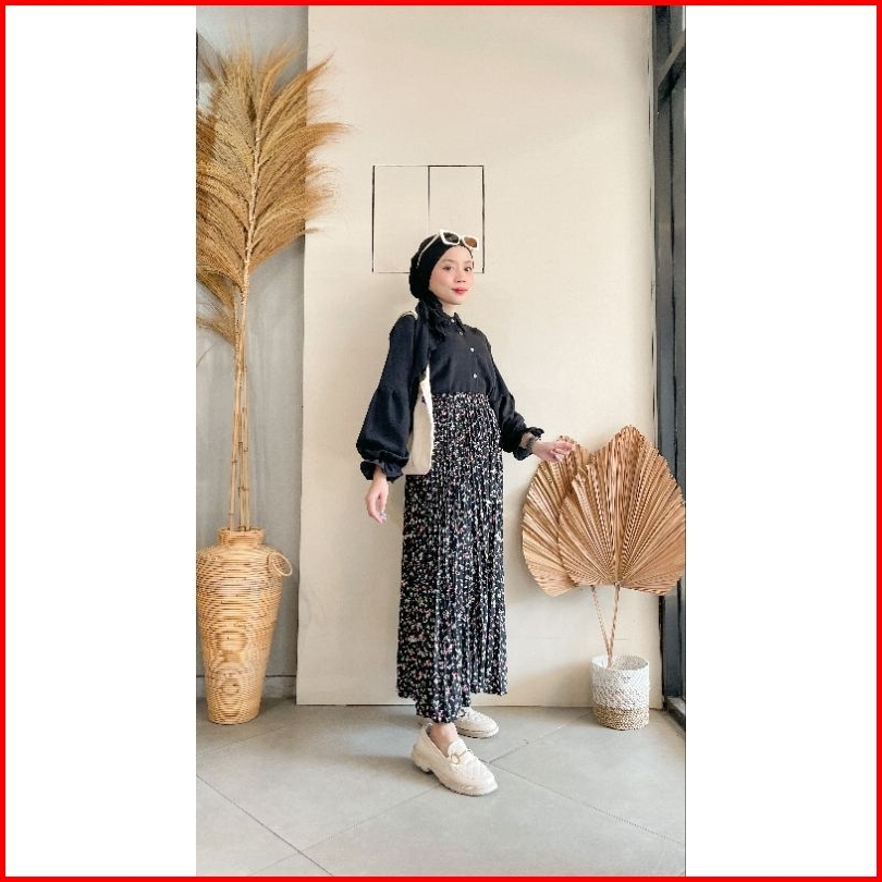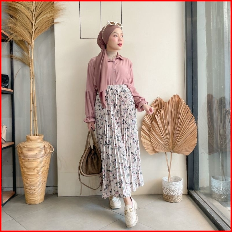 Violine Store - Oneset Setelan Wanita Remaja Kekinian Rok Panjang Wanita Atasan Crinckle Bawahan Rok Plisket Motif Bunga