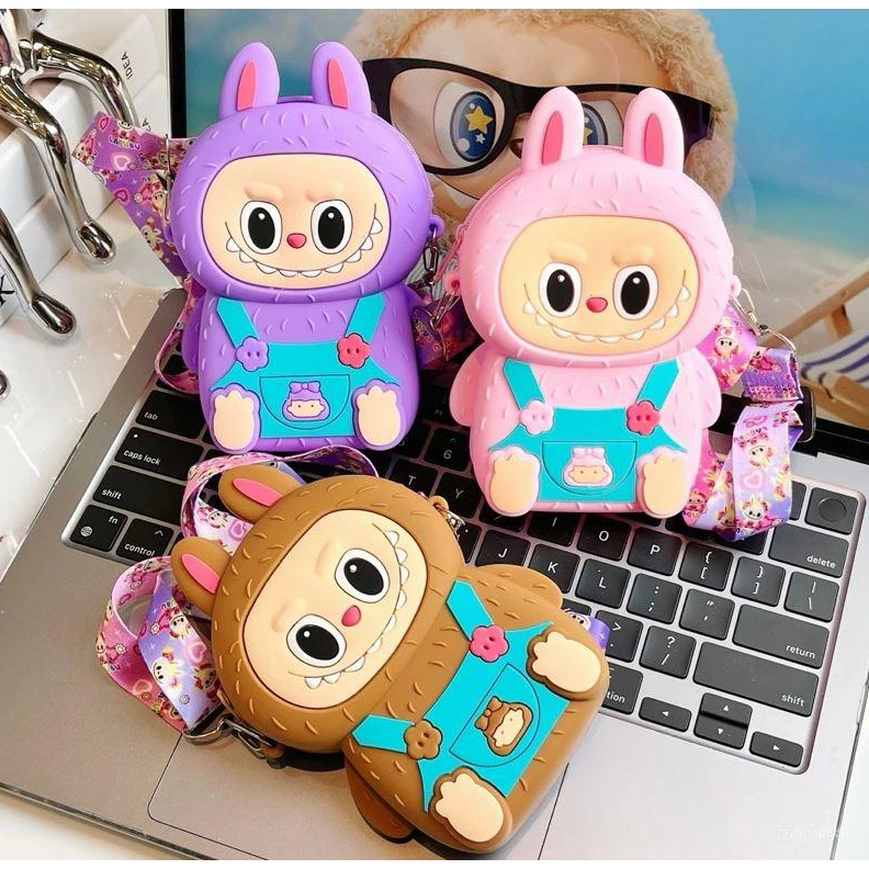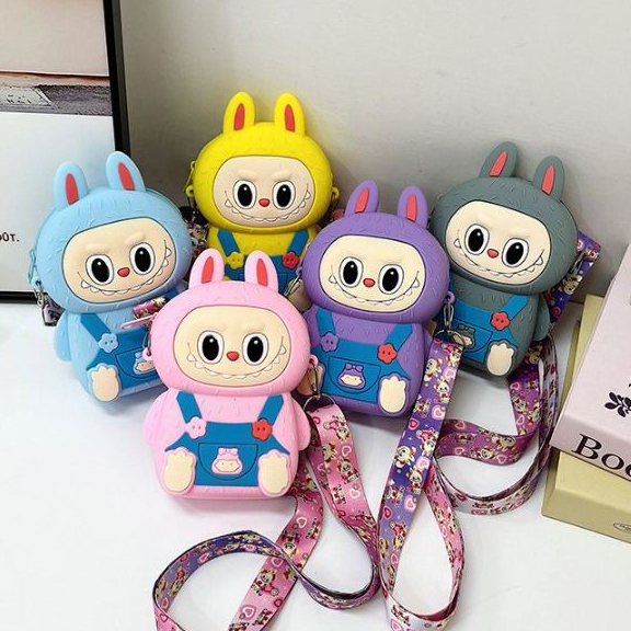Tas Selempang Labubu Tas Silikon Tas Labubu Anak Tas Boneka Kartun Anak Tahan Air