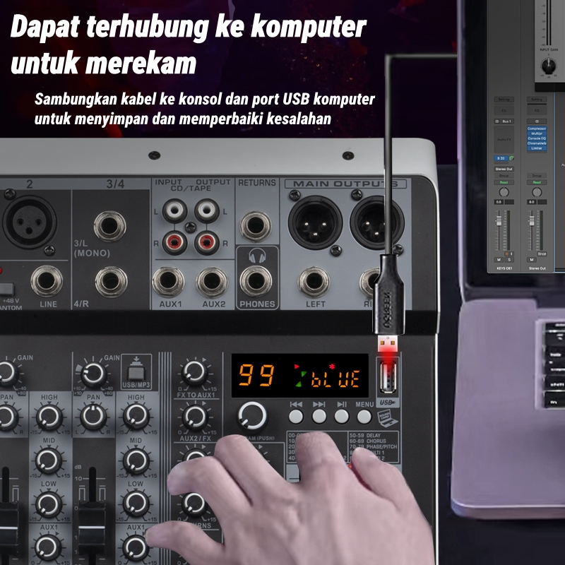 Mixer Audio UT4/6 Profesional 4/7 CHANNEL DSP support Bluetooth USB Recording equipment mikser audio