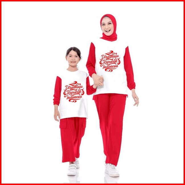 Shazfa Kids Setelan Aspia Merah Putih Kemerdekaan Kaos Couple Ibu Anak Perempuan Spesial 17 Agustus 2025