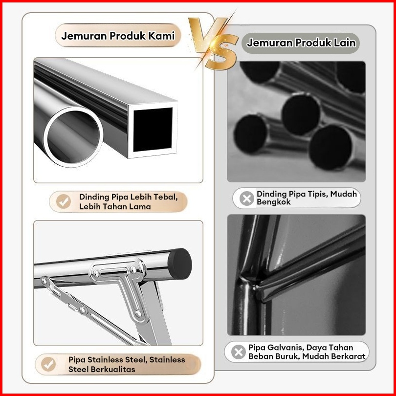 5 Tiangomax Jemuran Baju Lipat Stainless Steel Jemuran Pakaian 160-240cm Tempat Jemuran Baju Jemuran Hanger Portable Jem