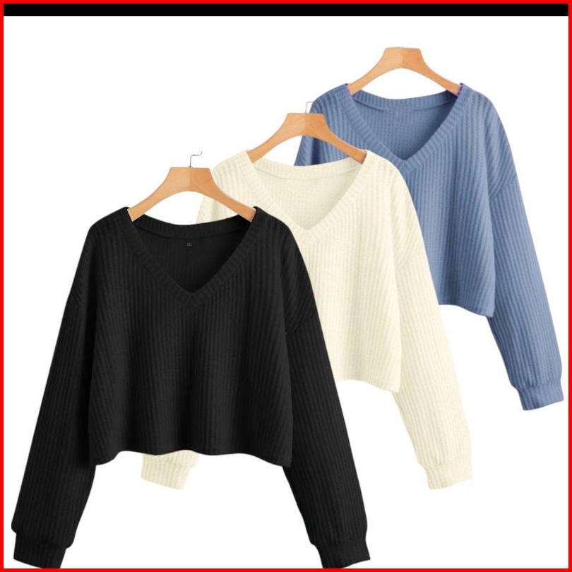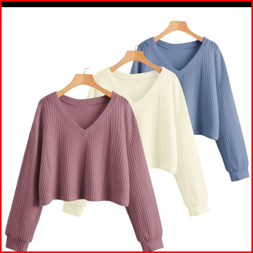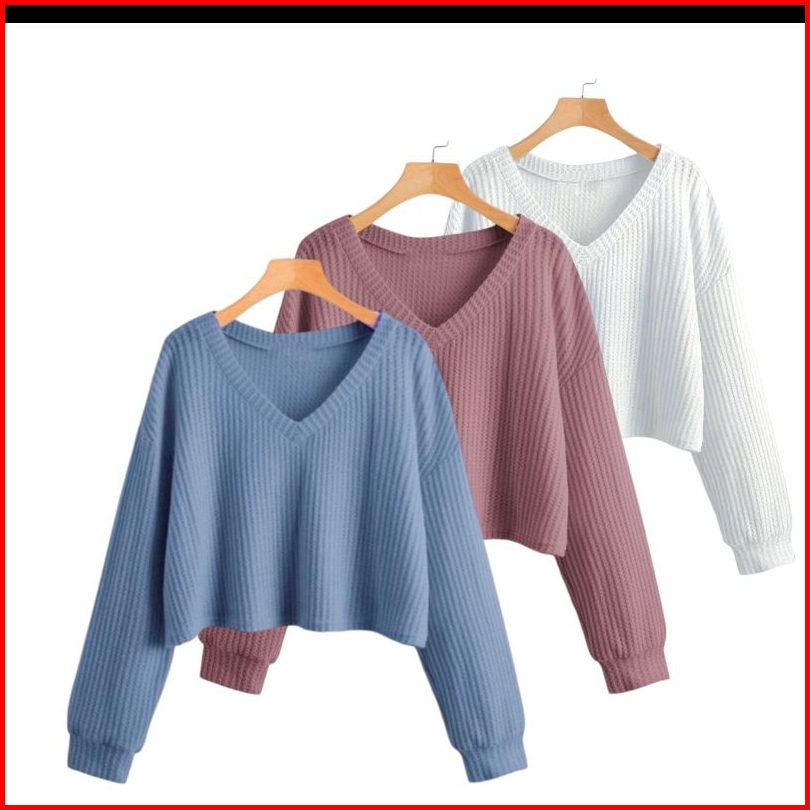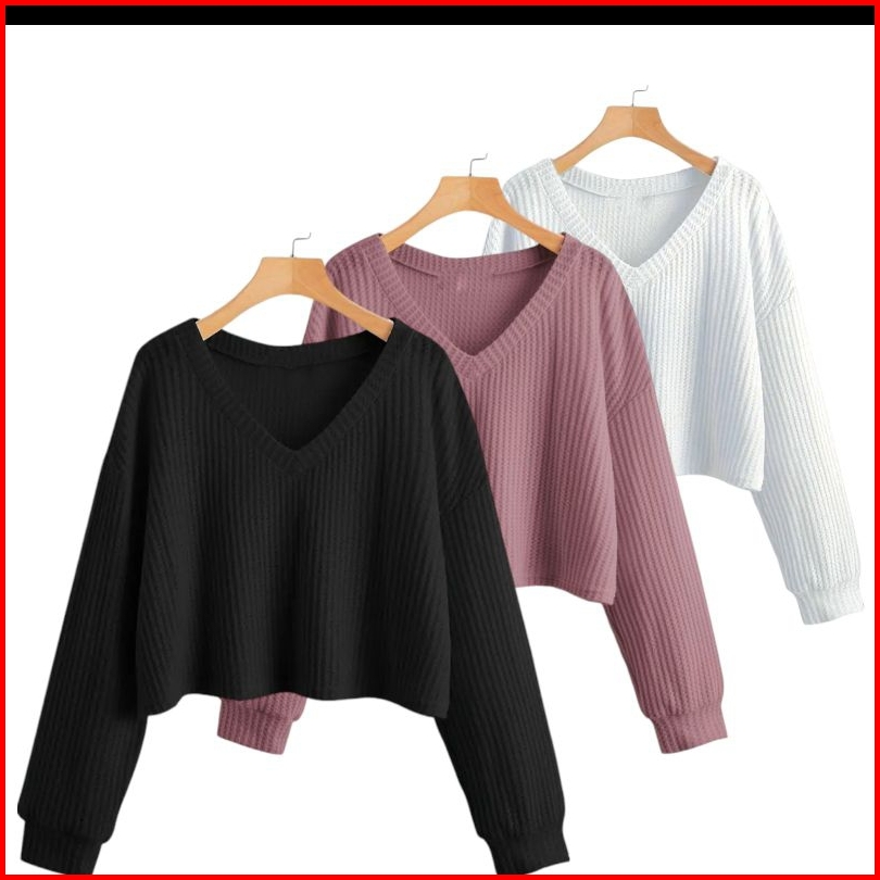 Paket 3 Pcs Atasan Crop V Wanita Lengan Panjang