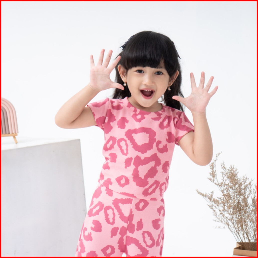 Setelan Anak Perempuan Crop Top Motif Leopard Bahan Knit Premium Usia 1-8 Tahun