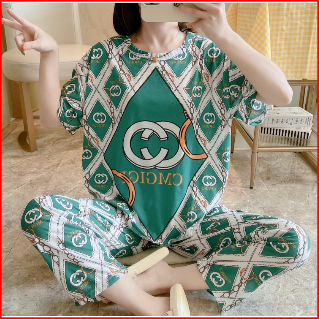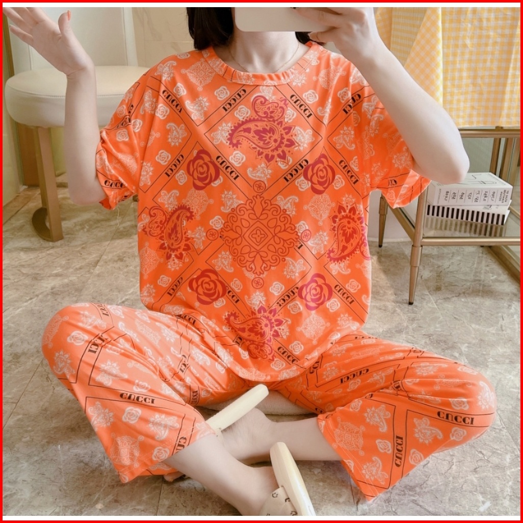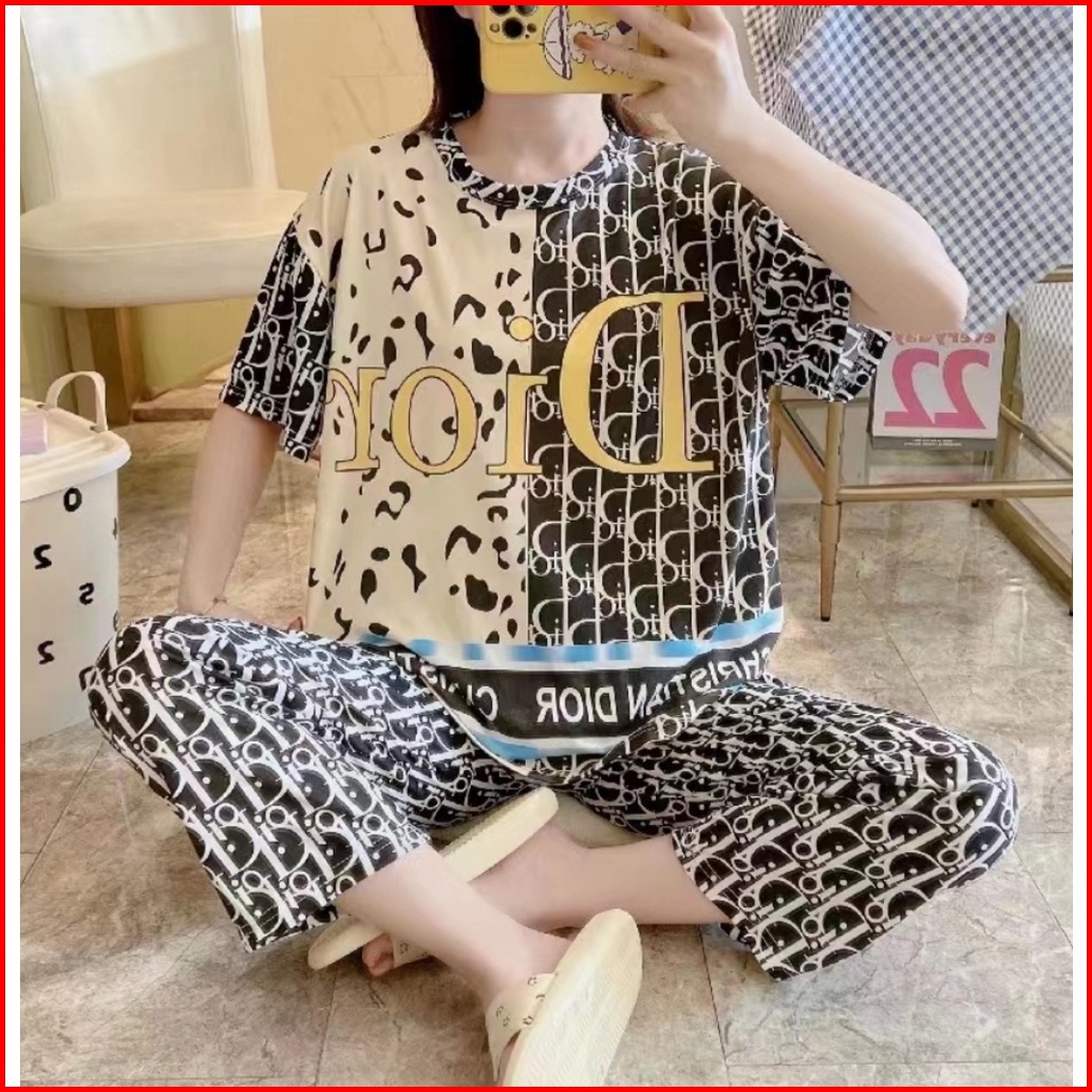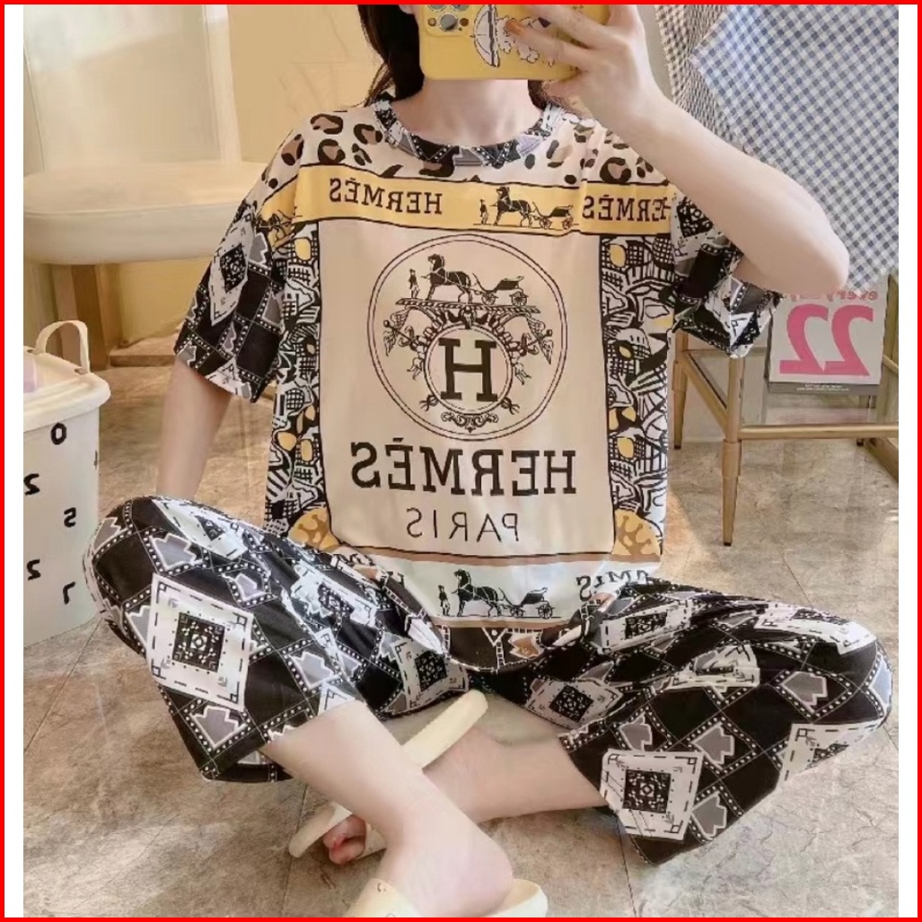 Setelan Baju Tidur Piyama Import Wanita Spandek Nyaman Lengan Pendek Celana Panjang