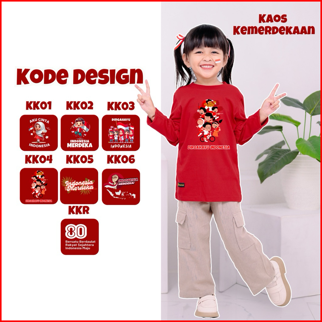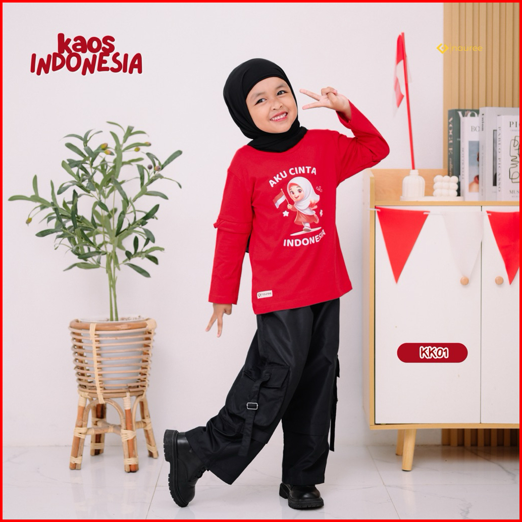 Kaos Agustusan Anak Tangan Panjang Hut Ri Kemerdekaan Bahan Katun 1-10 Tahun
