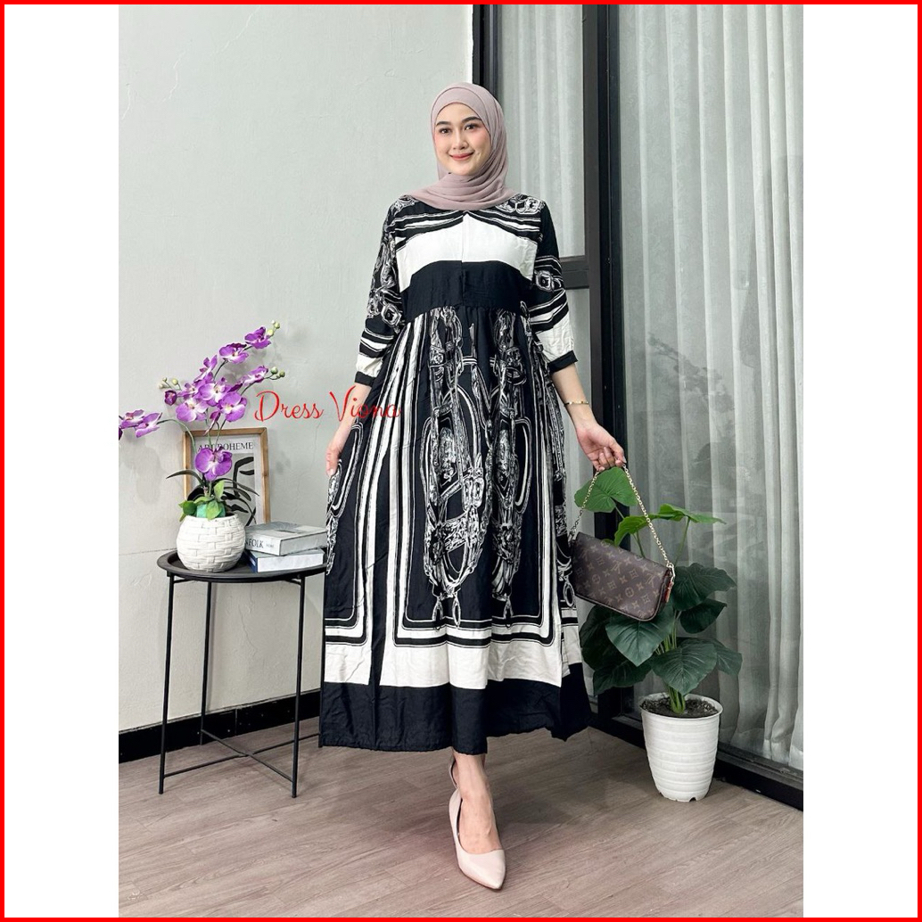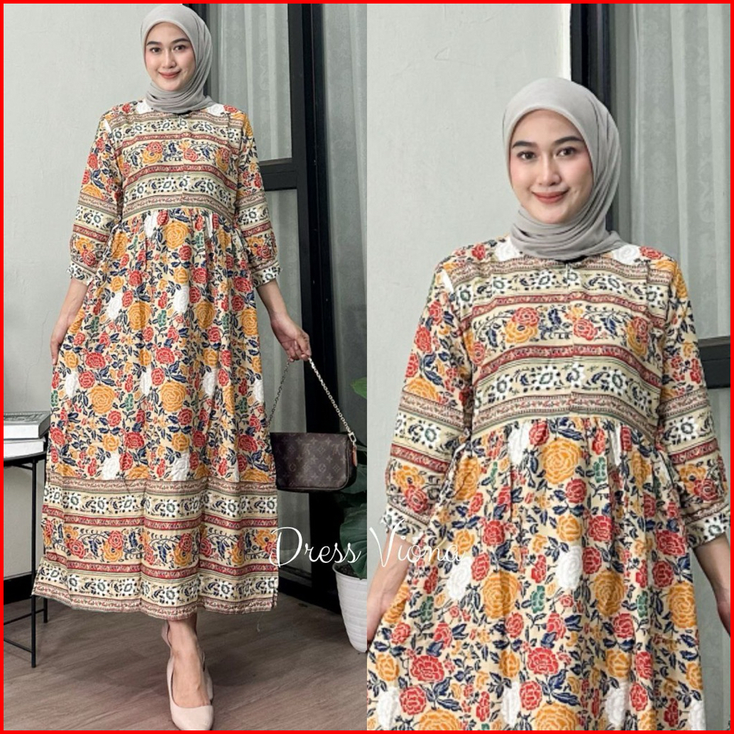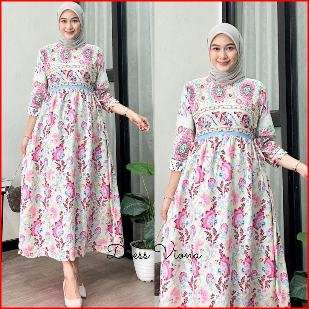 Midi Dress Viona Dress Rayon Busui Terbaru Gamis Kekinian Rayon Adem