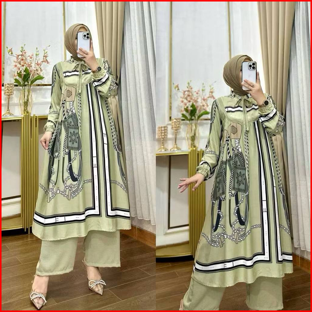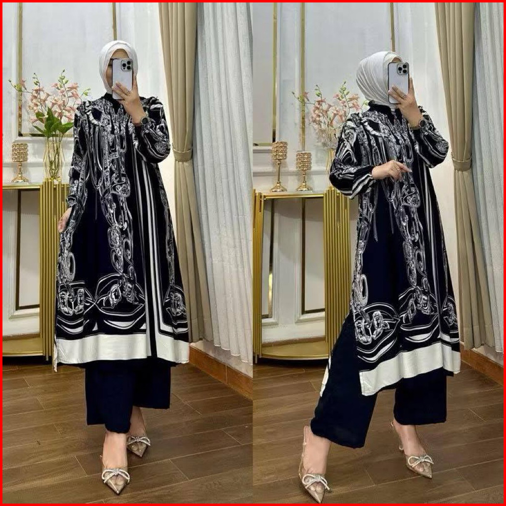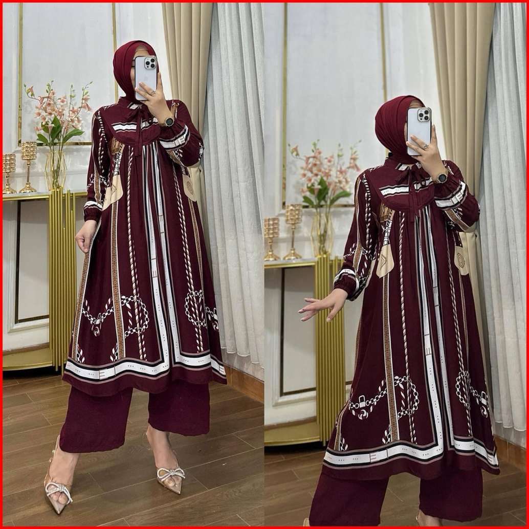 Sabrina Set Long Tunik Terbaru Rayon Diamond Premium Adem Busui