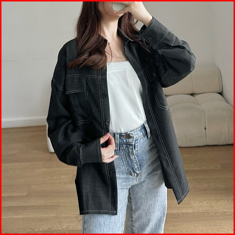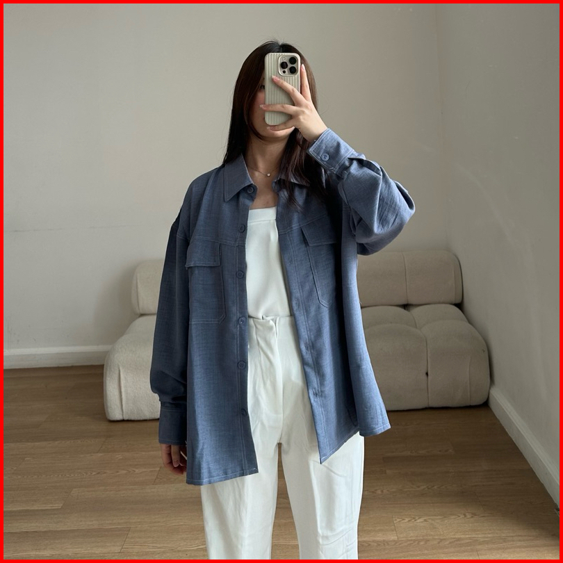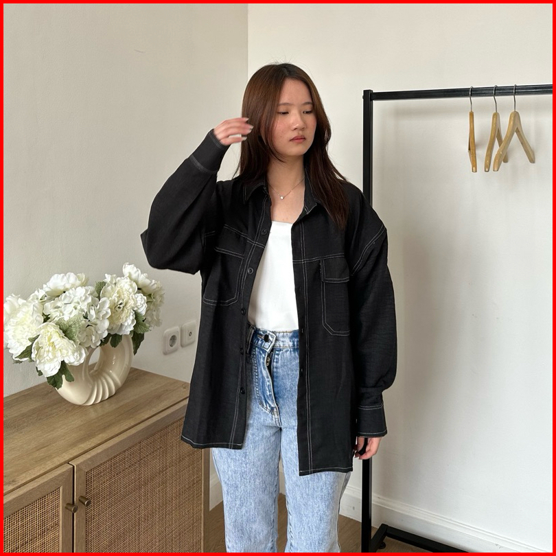 Juwon Shirt Kemeja Denim Oversize List Kemeja Denim Oversize Kemeja Korea Basic Kualitas Shirt Basic Korean Kemej