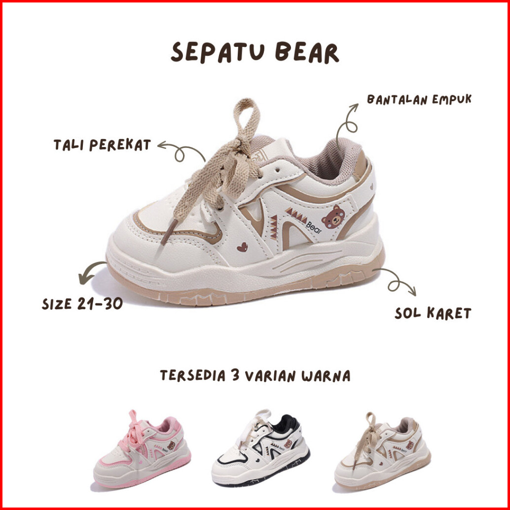 Littleolala - Bear Sepatu Sneakers Anak Bayi Usia 1-5 Tahun