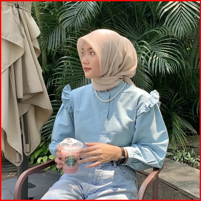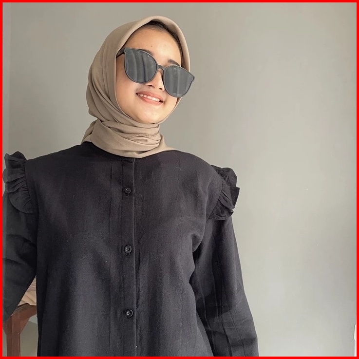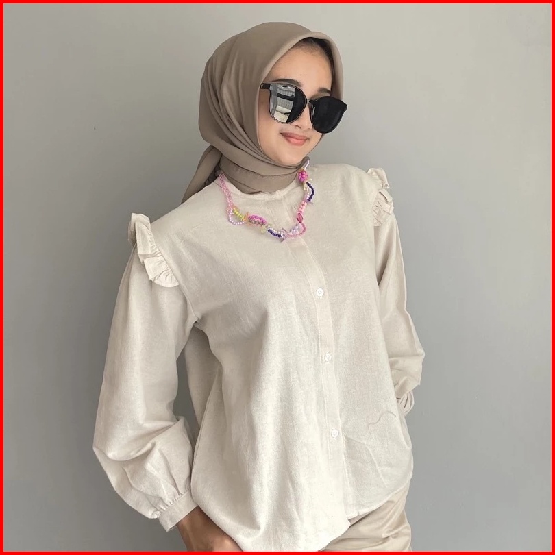 Yurim Blouse Ruffle - Atasan Wanita - Kemeja Linen Basic Lengan Panjang