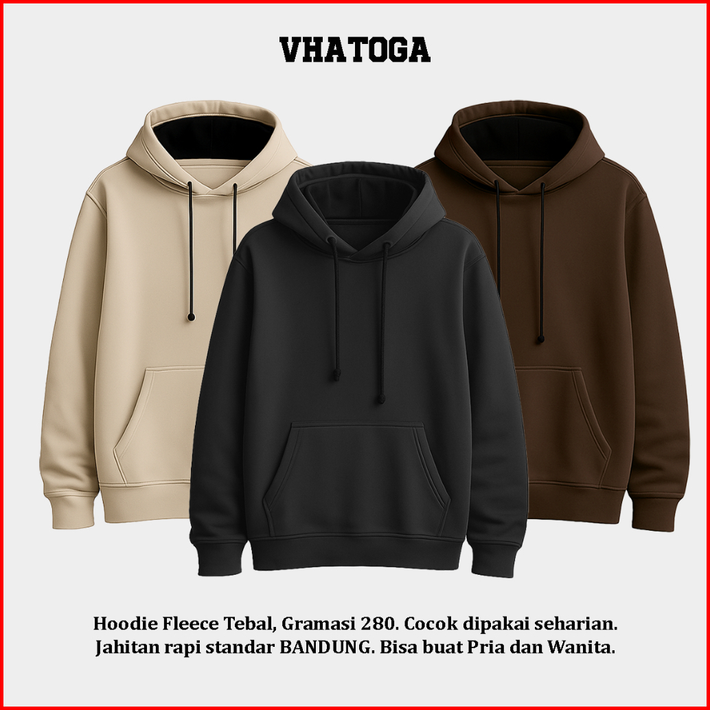 Vhatoga - Hoodie Polos Sweater Polos Cowok Cewek Fleece Tebal