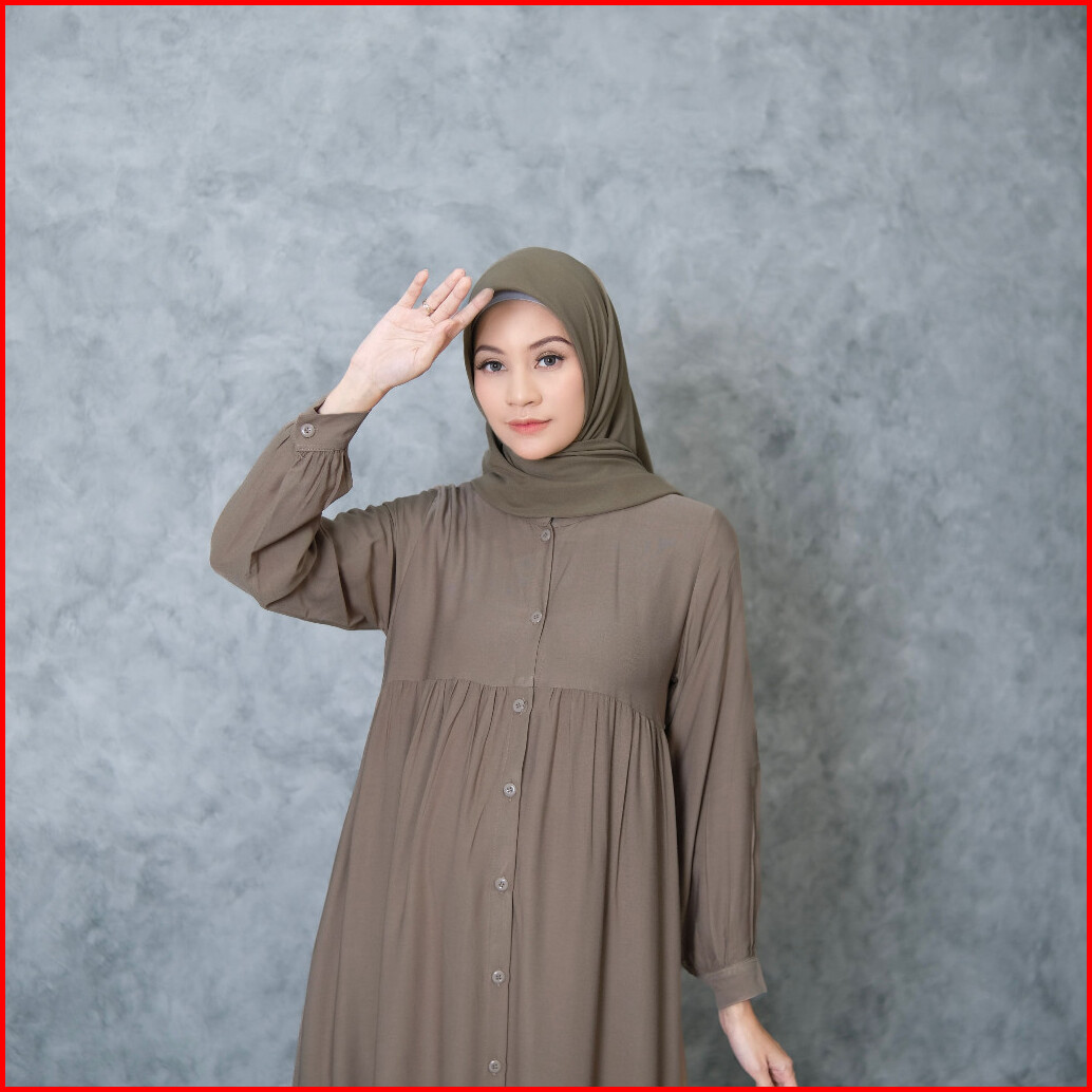 Gamis Full Kancing Rayon Twill Gamis Polos Premium Muslim Wanita Gamis Lengan Kancing