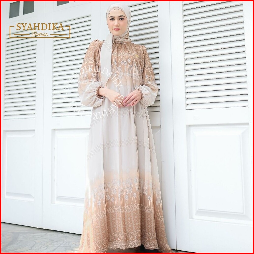 Gamis Jumbo Terbaru Ceruty Babydoll Full Furing Resleting Depan Dress Set Hijab Jumbo Size Ld 130 Premium Syahnaz By Sya