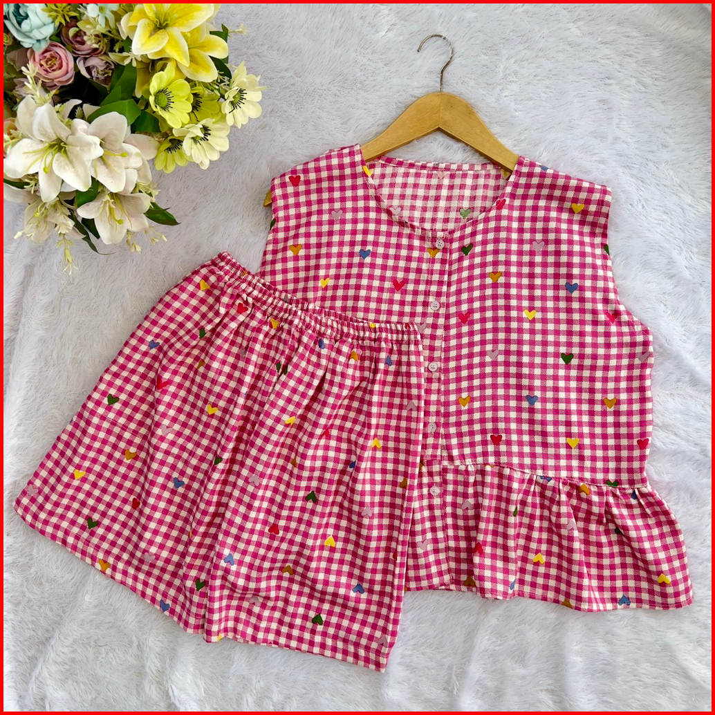 Piyama Nina Tanpa Lengan Ld 120 Celana Pendek Jumbo Busui Kancing Baju Tidur One Set Stelan Kutung