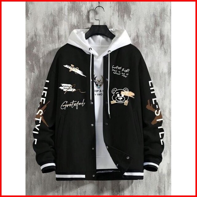 Femes Great Ride Bear Baseball Varsity Fleece Tebal Premium Ootd Korean Style Casual Daily