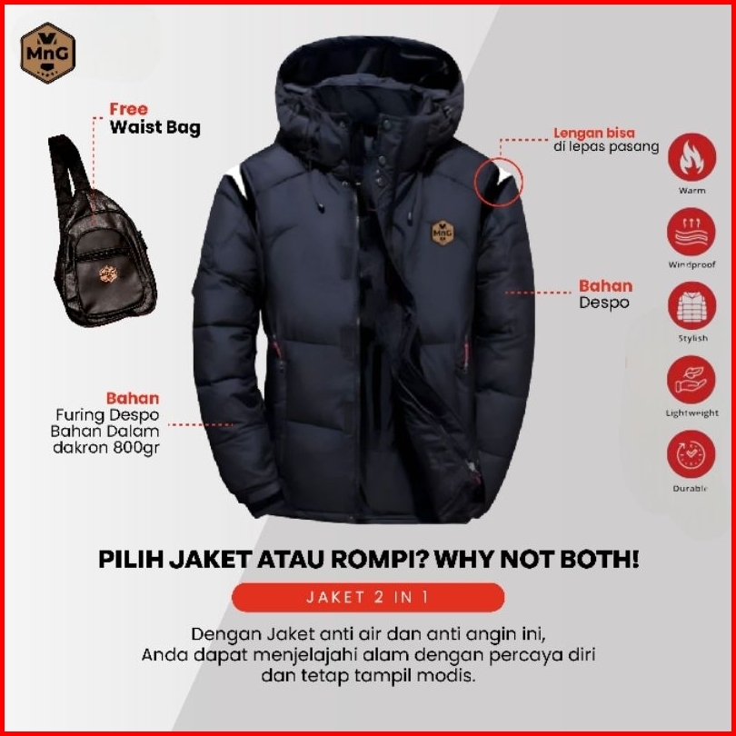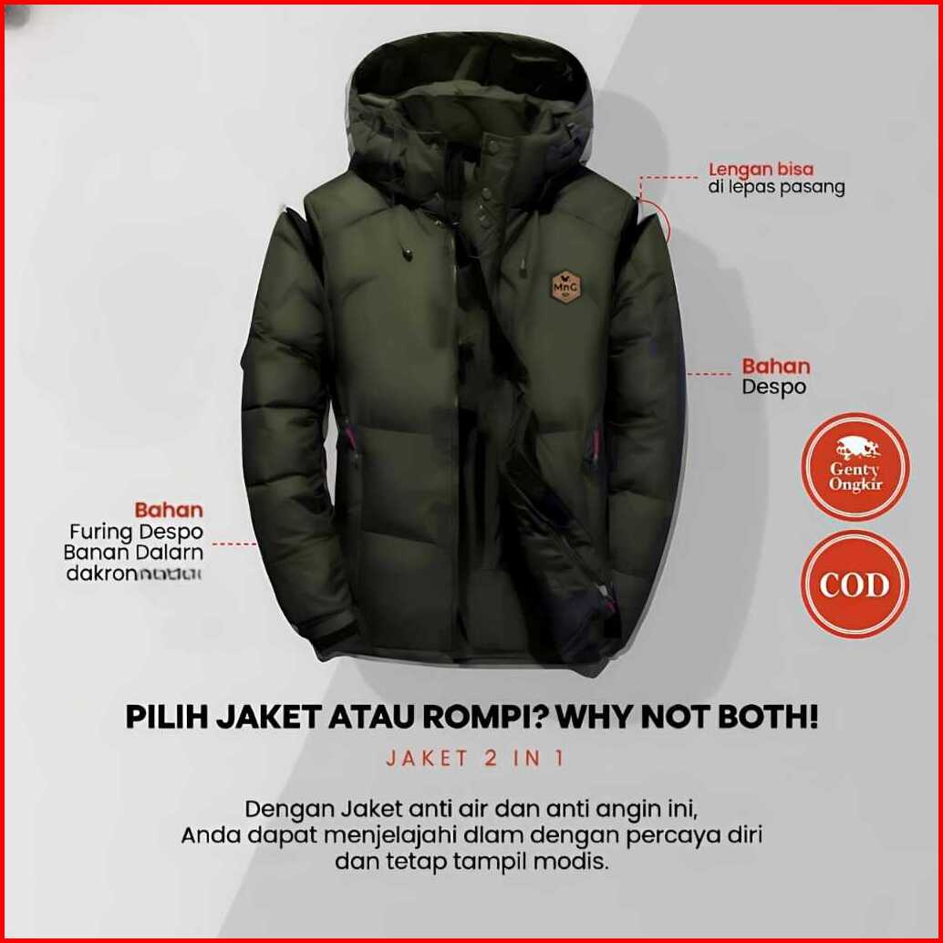 Jaket Puffer 2in1 Multifungsi Rompi Waterproof Windproof Pria Wanita