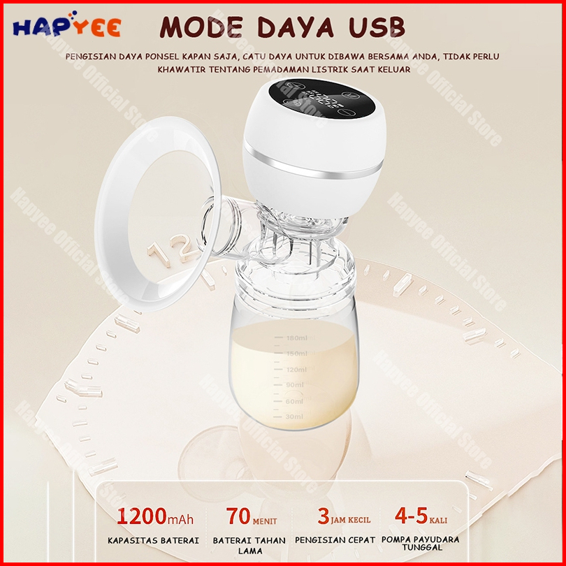 Hapyee Pompa Asi Electric Portable Tanpa Rasa Sakit Painless Rechargeable Single Electric Breast Pump Bpa Free