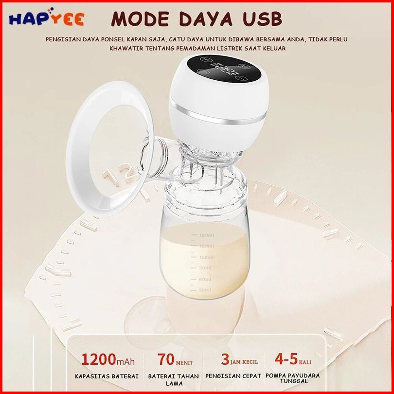 Hapyee Pompa Asi Electric Breast Pump Portable Painless Bpa Free-3 Mode 9 Level-24mm