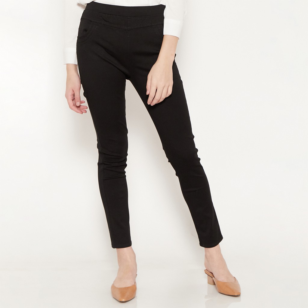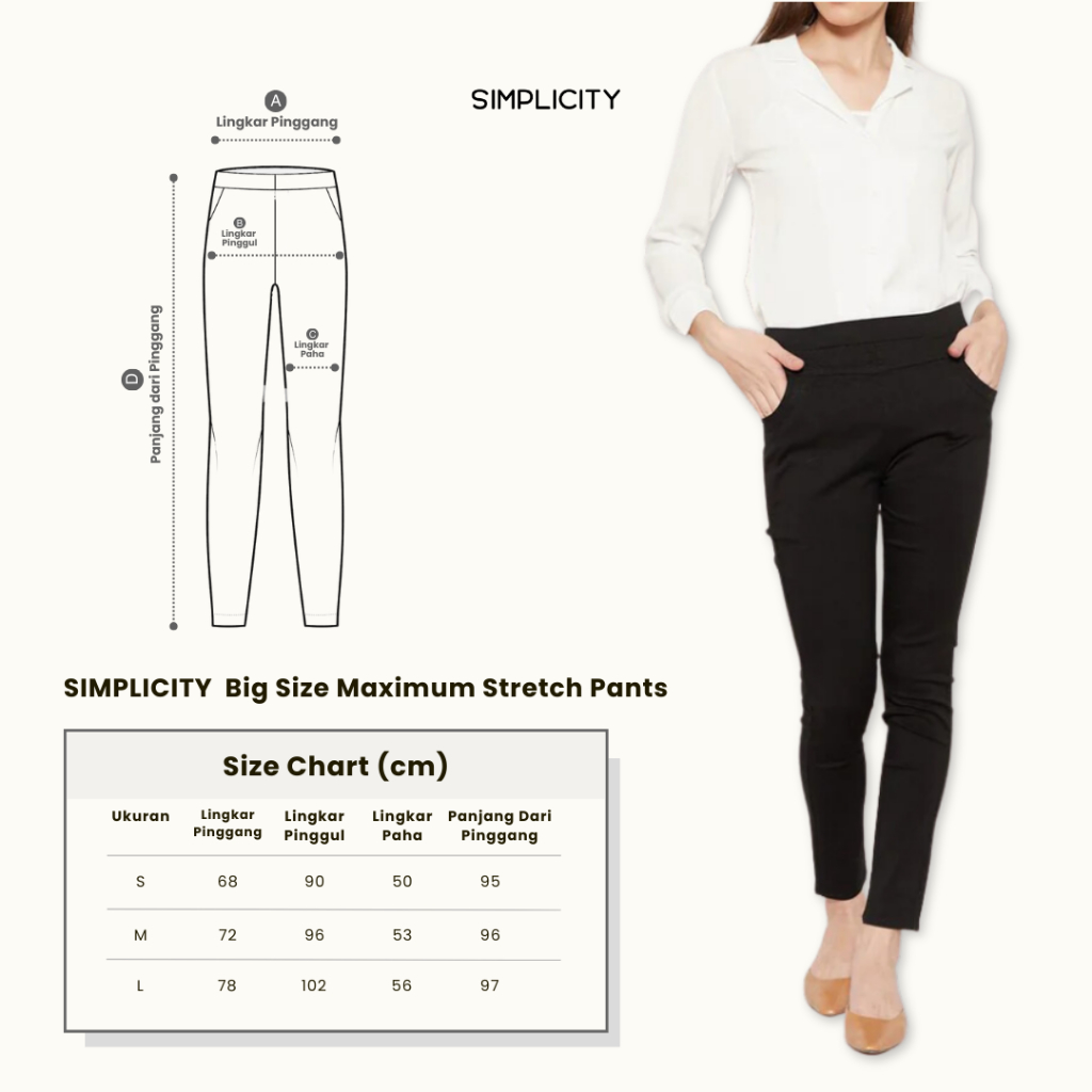 SIMPLICITY Big Size Maximum Stretch Pants Black / Celana Kerja Wanita Kekinian Officewear Minimalist Model Slimfit Pinggang Karet Bahan Stretch Melar Ukuran S - XL