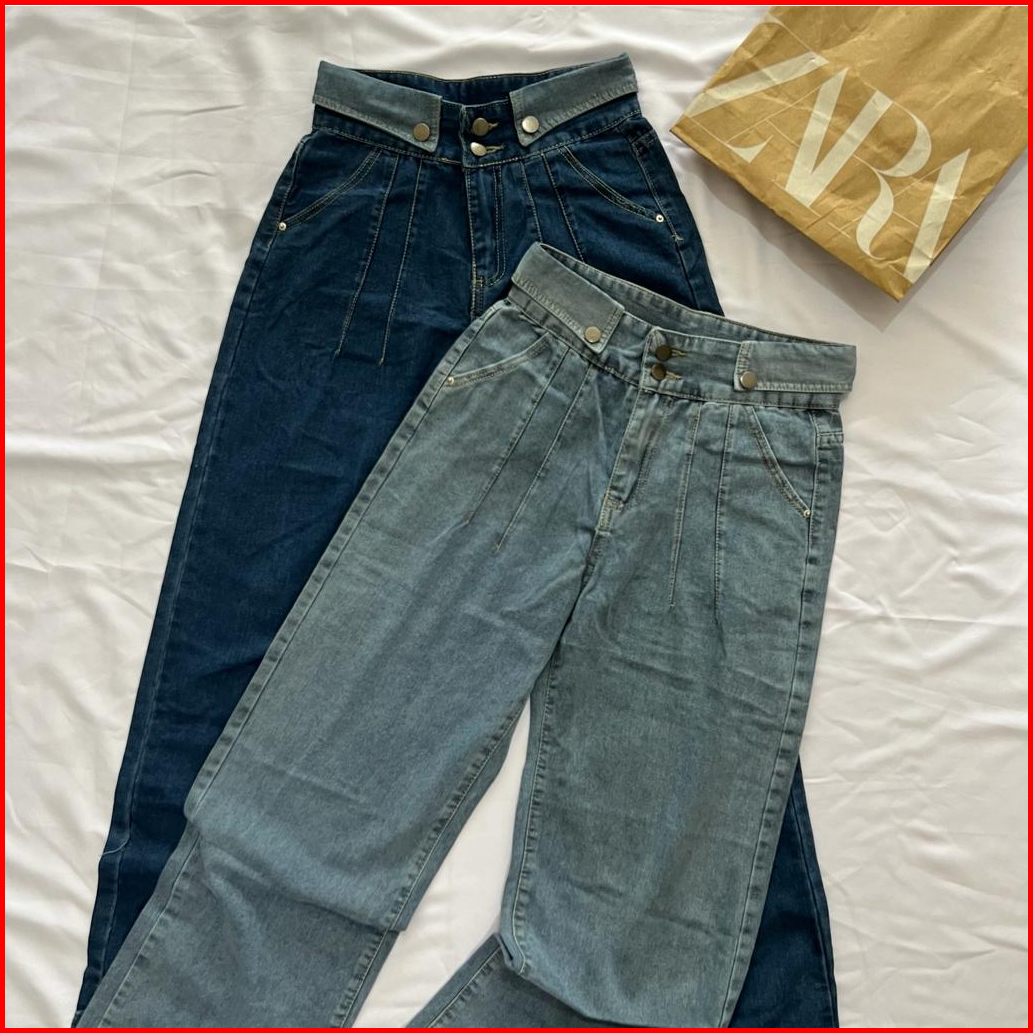 Mfm Celana Jeans Wanita Highwaist Lapel Jeans Kulot Jeans Import High Waist Jeans Resleting Ykk