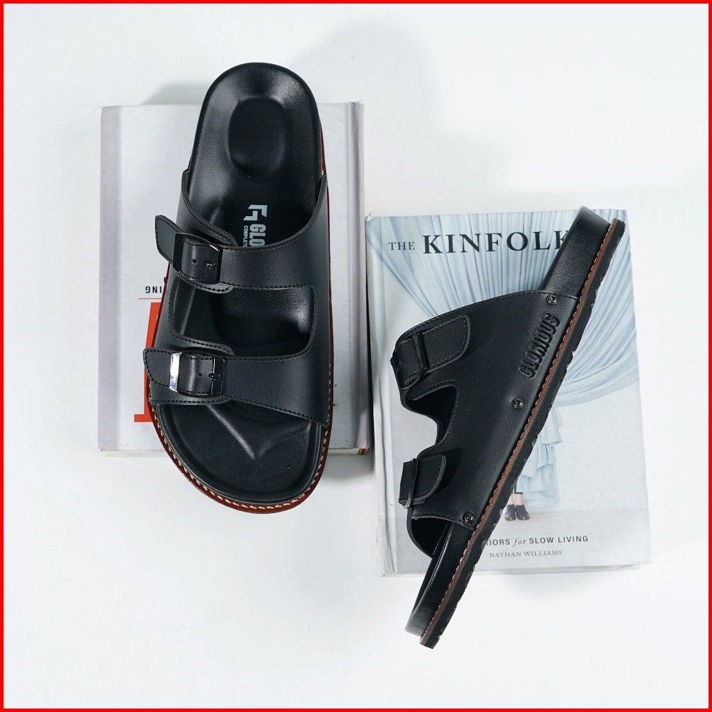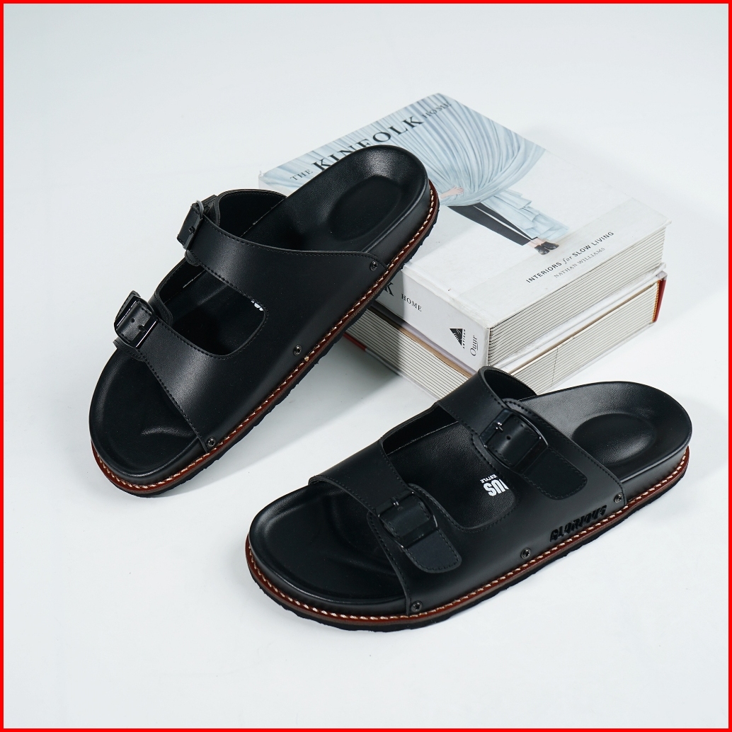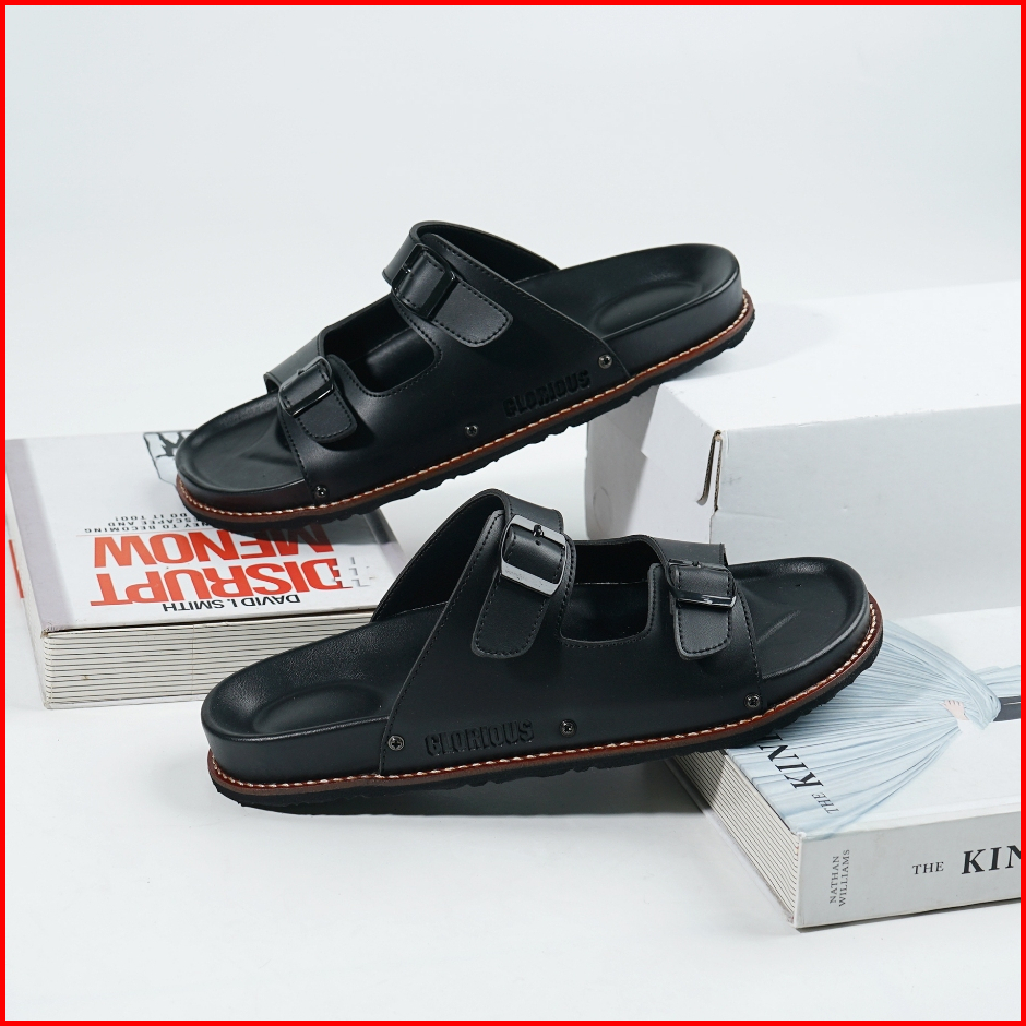 Glorious - Sage Pleter Black Sandal Formal Casual Pria Wanita Kulit Slide Slop Distro Hitam Stylist
