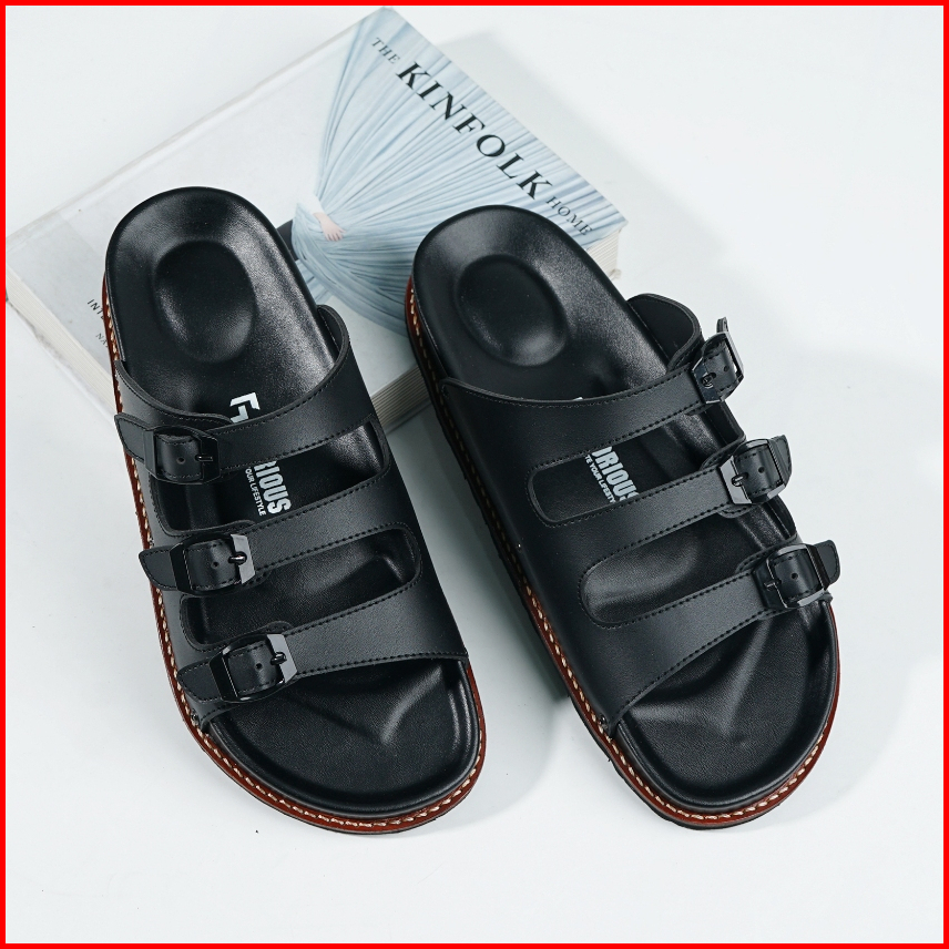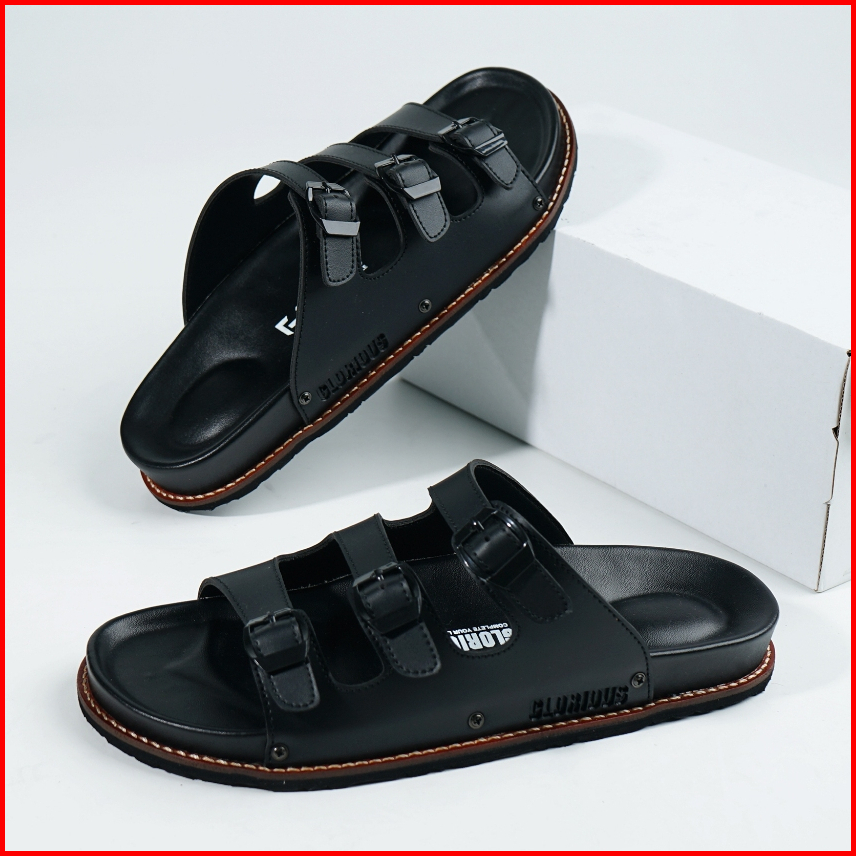 Glorious - Nero Pleter Black Sandal Formal Casual Pria Wanita Kulit Slide Slop Distro Hitam Stylist