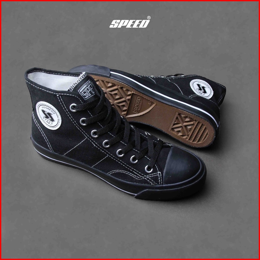 Speed - Basic Hi Hitam - Sepatu Sneakers Casual Pria Wanita 37 43