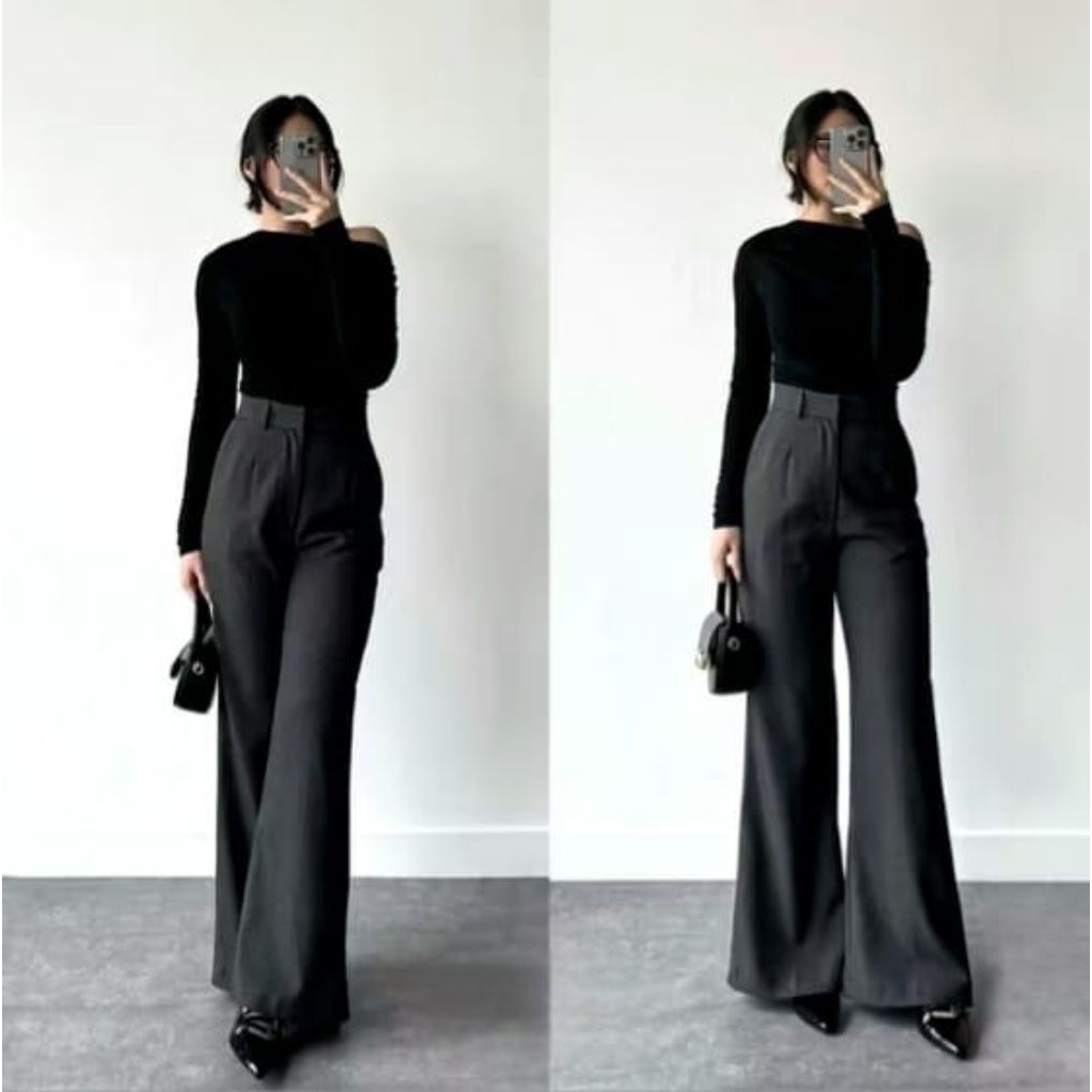 ETTA PANTS CUTBRAY SEMI WOL Celana cutbray wanita highwaist pinggang karet Semi Woll premium anti kusut anti lecek