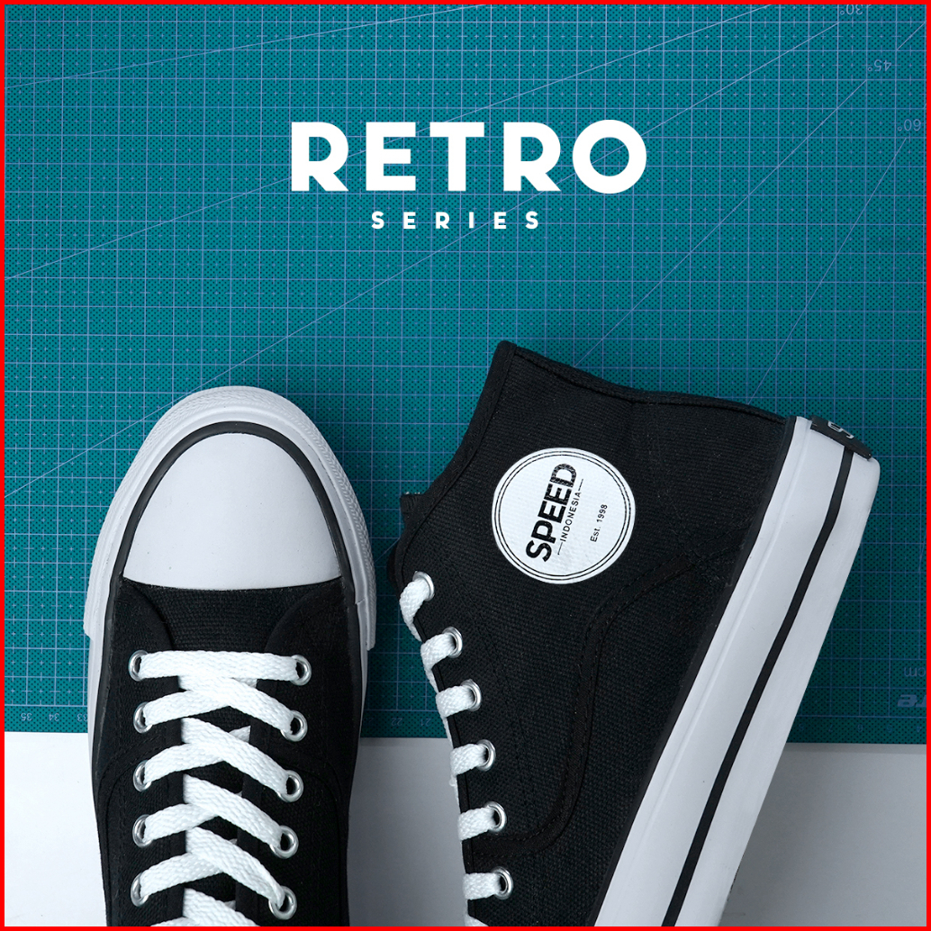 Speed - Retro Hi Hitam Putih - Sepatu Pria Wanita 33 - 43