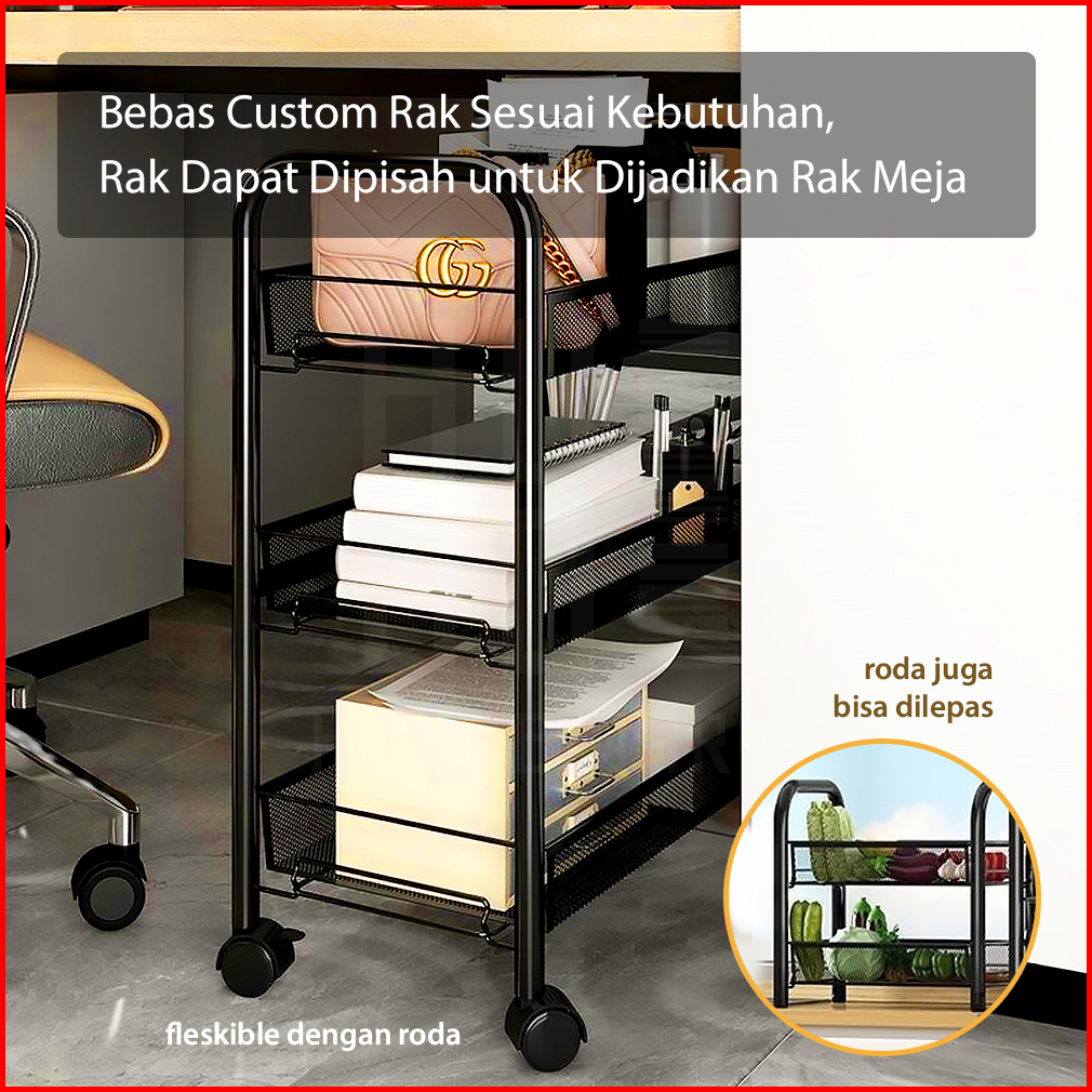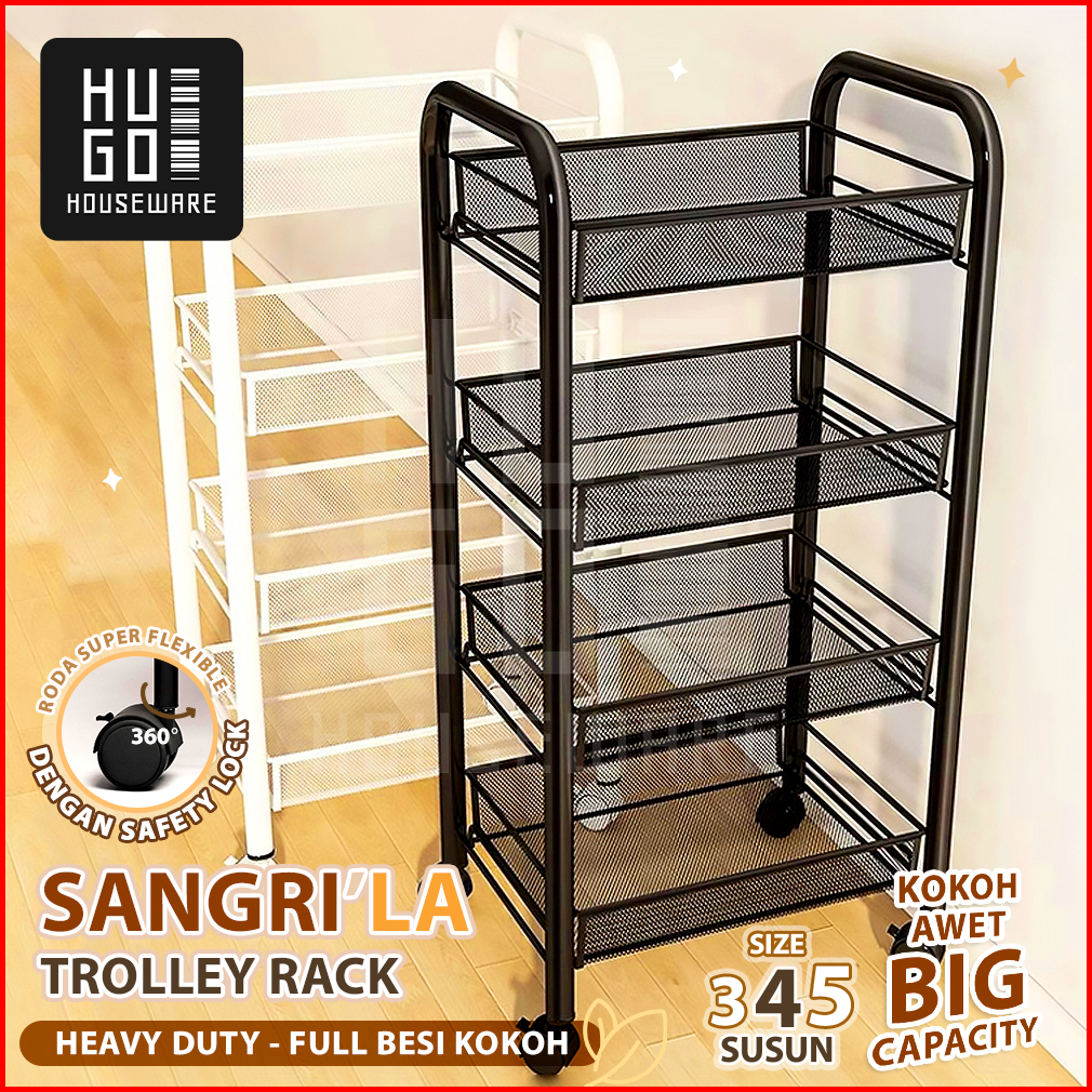 Hugo Rak Dapur Besi Serbaguna Rak Troli Besi Penyimpanan Bertingkat Rak Kamar Mandi Rak Salon Rak Besi Susun Dorong Deng