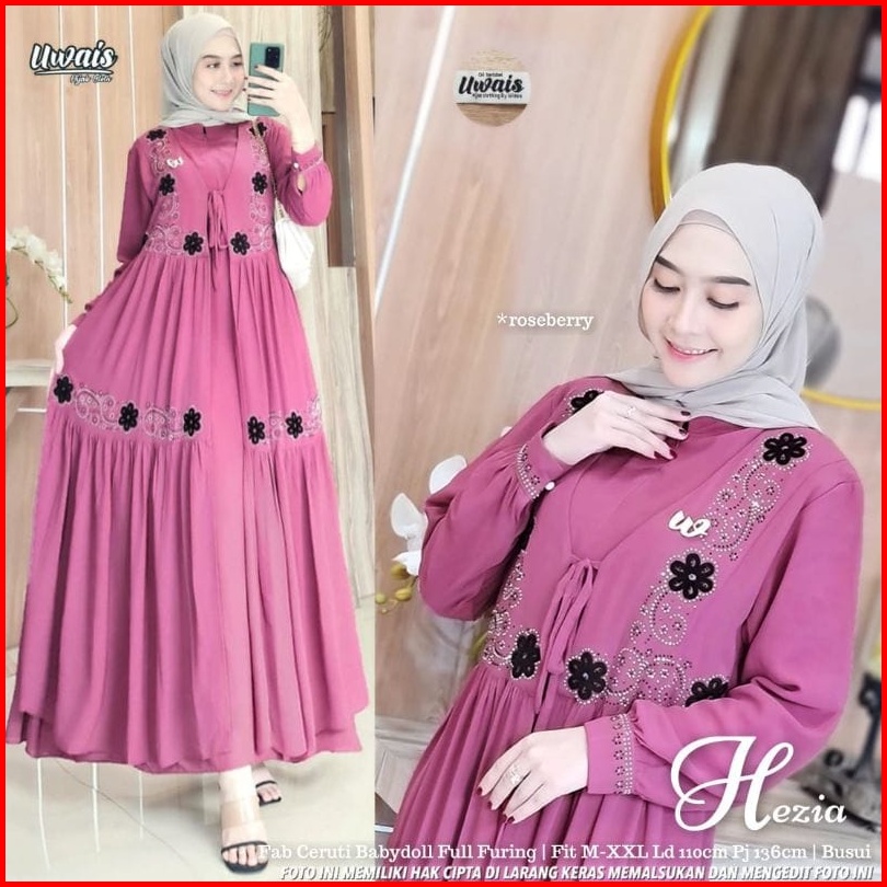 - Hezia Maxy Ukuran L Xl Xxl Xxxl Super Jumbo Gamis Ceruty Babydol Gamis Bordil