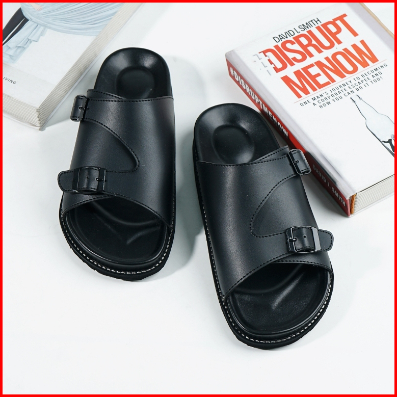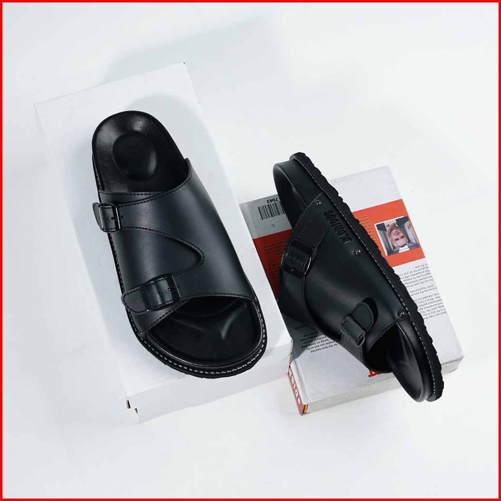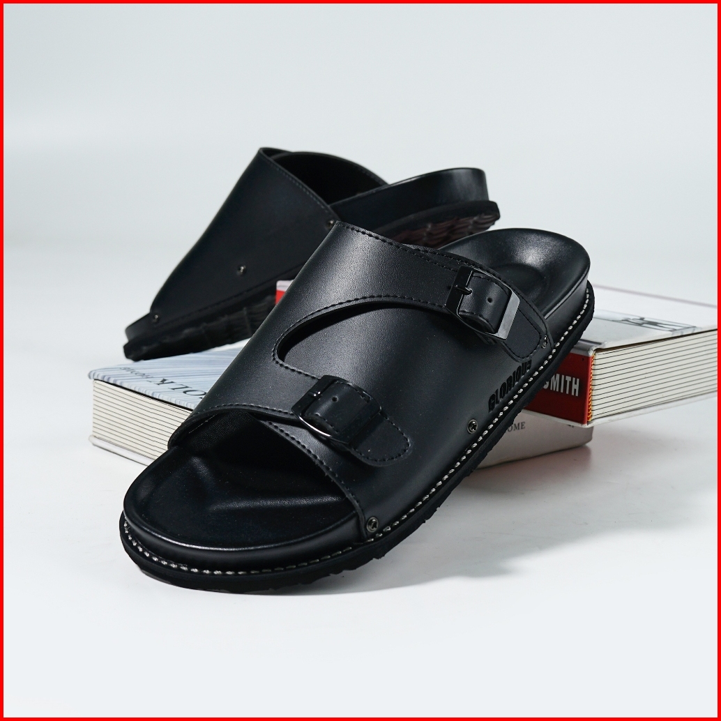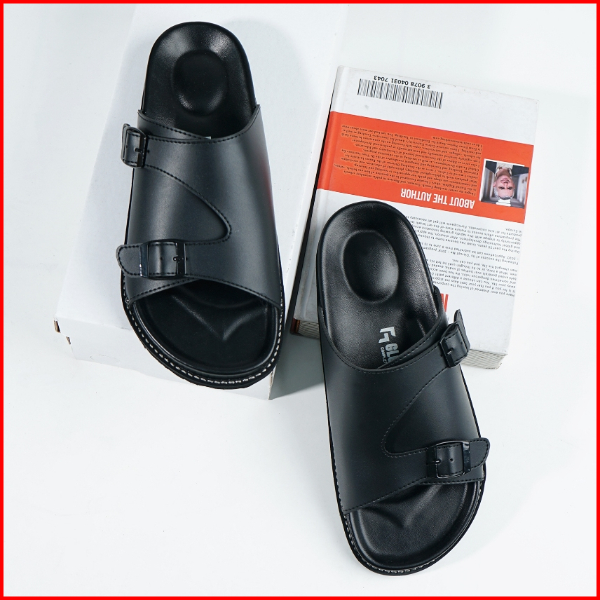 Glorious - Yora Strong Black Sandal Formal Casual Pria Wanita Kulit Slide Slop Distro Hitam Stylist