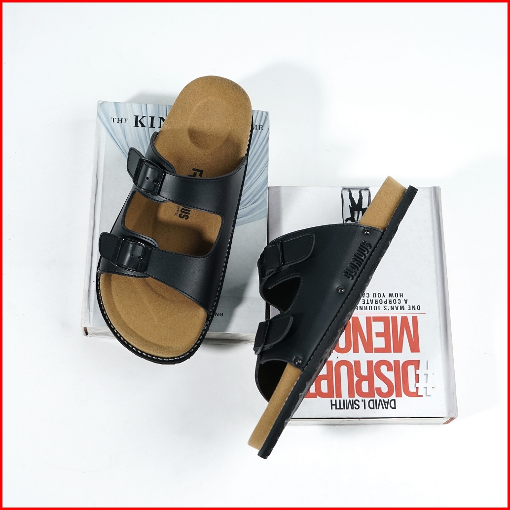 Glorious - Sage Full Black Sandal Pria Wanita Casual Formal Kulit Slide Slop Distro Stylist Hitam