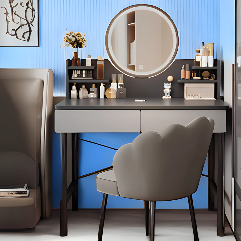 Meja Rias Makeup Meja Rias Minimalis Rak Kosmetik Bahan Kayu MDF Meja Rias Kaca Bundar